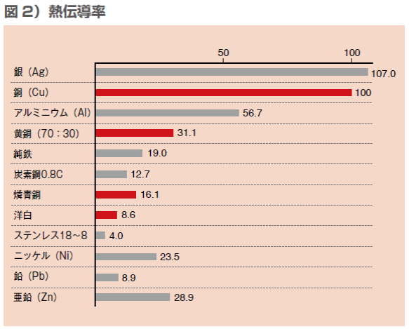 ※上図は”銅の熱伝導率を100とした場合の他金属との比較”