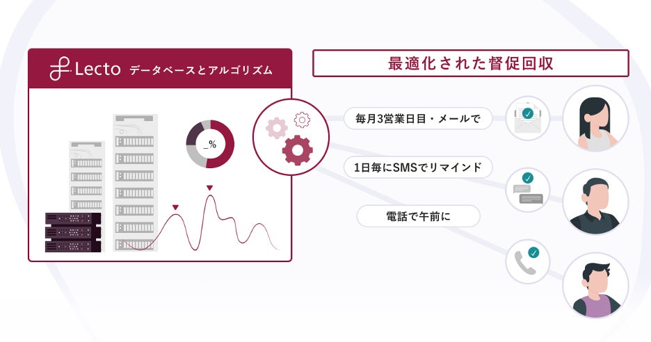 | 2. | 顧客対応管理のデジタル化 | 督促履歴などの顧客対応の履歴が紙媒体や基幹システムに点在し、管理が煩雑 | システムからのリマインド結果は自動で登録。債権データ・支払い状況・督促履歴・交渉履歴をLectoプラットフォームに蓄積し、業務のデジタル化を支援 |