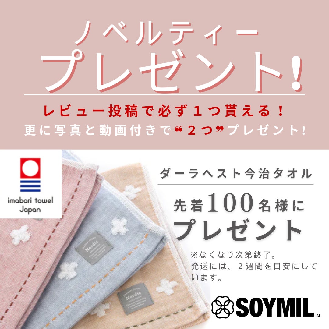 【100名限定】今治タオルが必ずもらえる、SOYMILノベルティキャンペーン実施中!