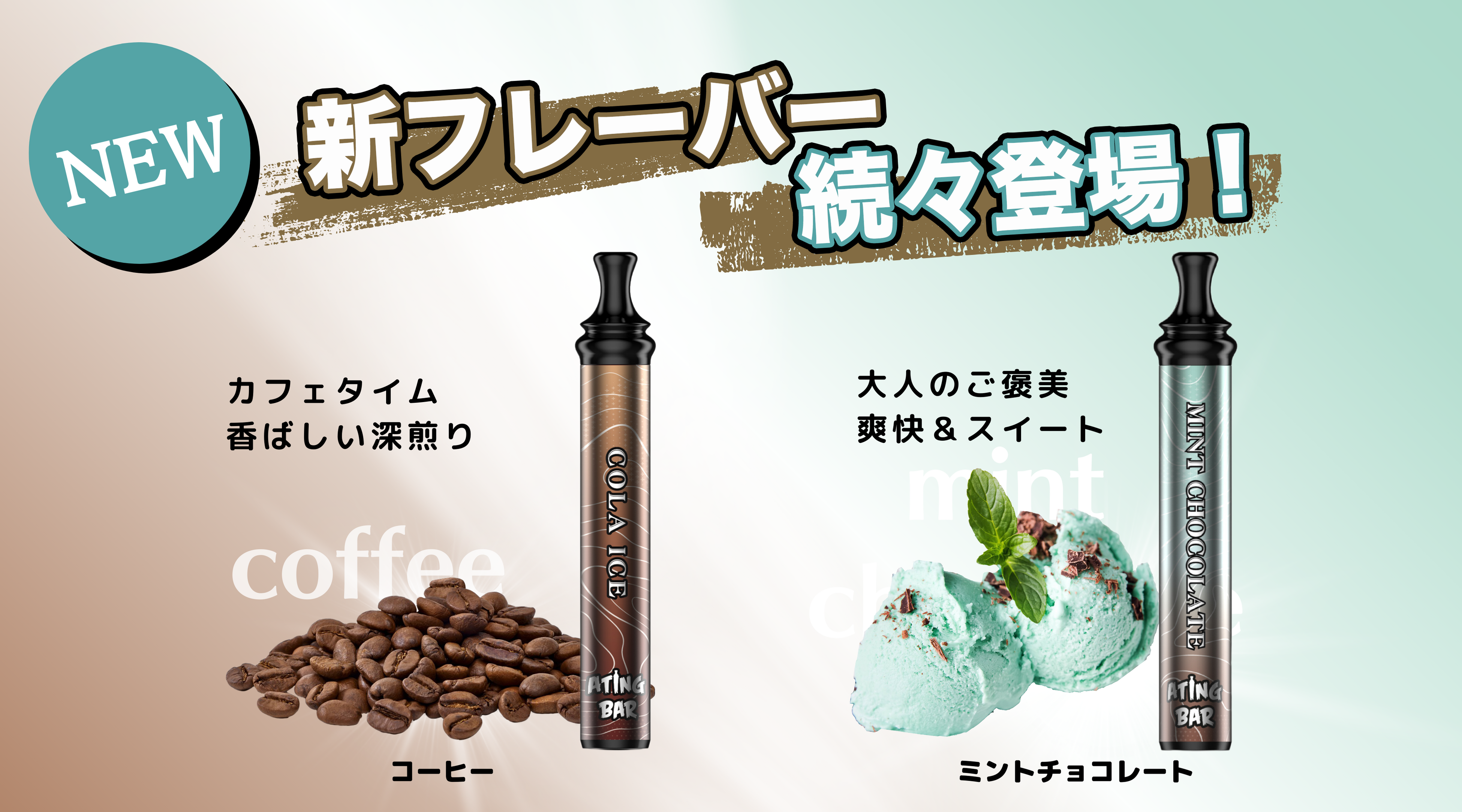 【新作フレーバー登場!】新しいリフレッシュ体験を提供するスマートシーシャ『ATING BAR』より「コーヒー」「ミントチョコレート」が販売開始!