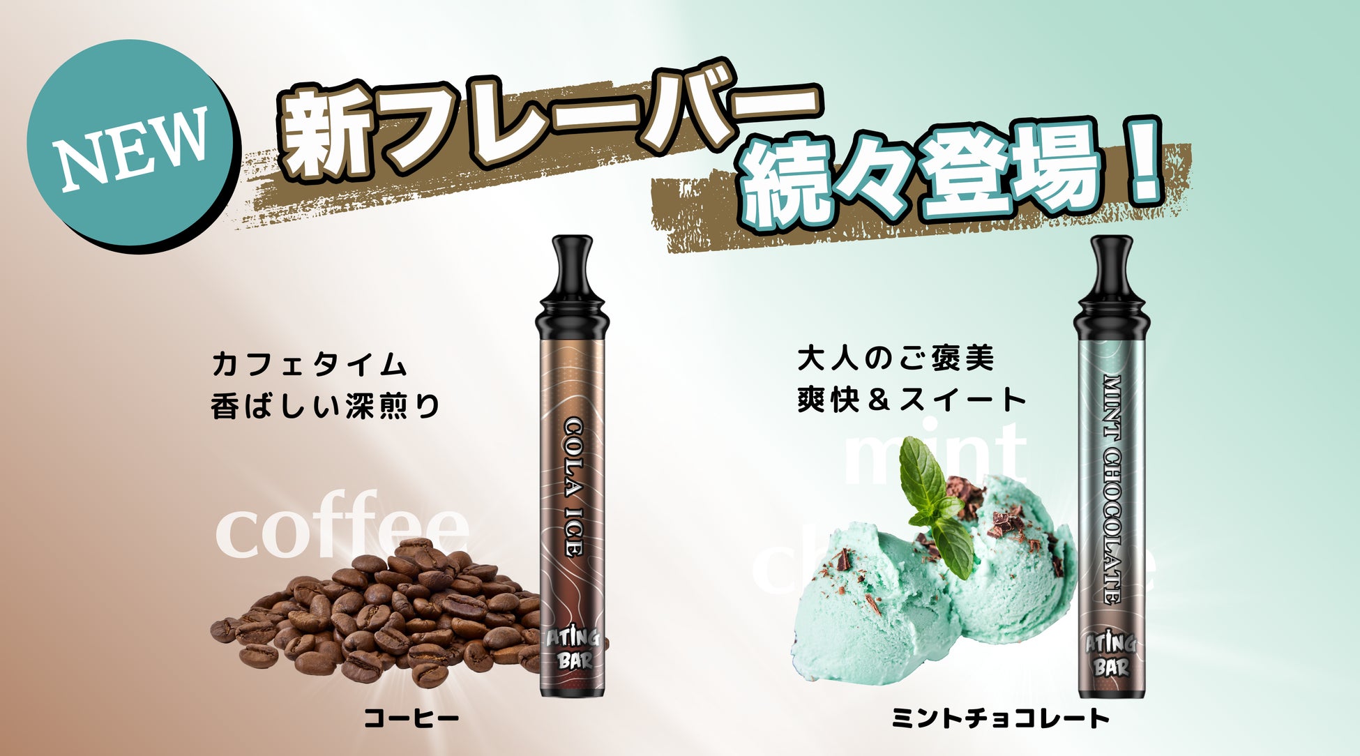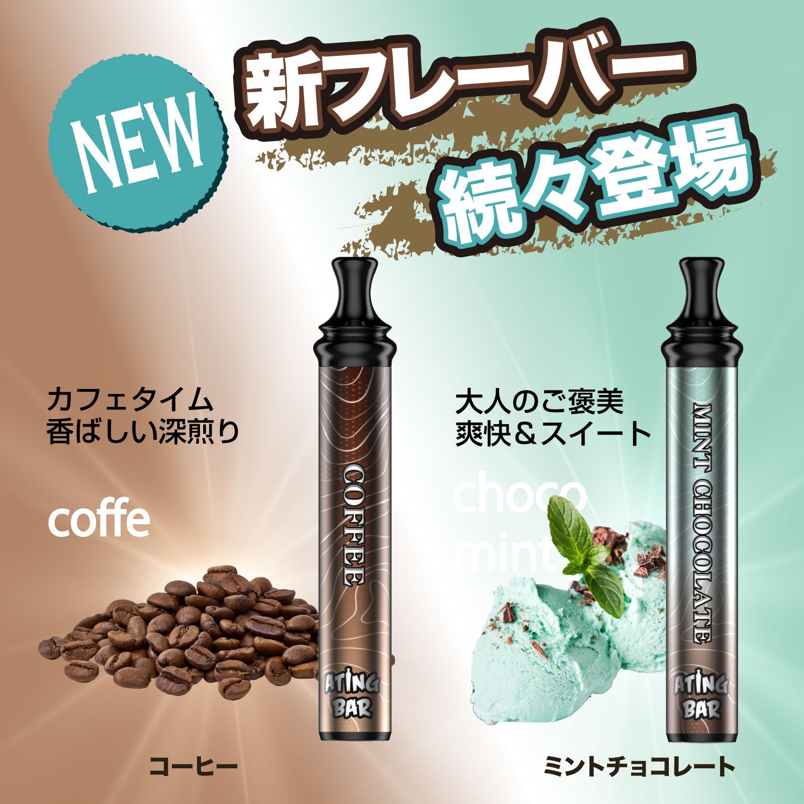 スマートシーシャ『ATING BAR(エーティングバー)』の日本総代理店、株式会社トランスペクト(本社:東京都千代田区、代表取締役社長:小林広記)は、新フレーバーとなる「コーヒー」と「ミントチョコレート」の販売を開始しました。