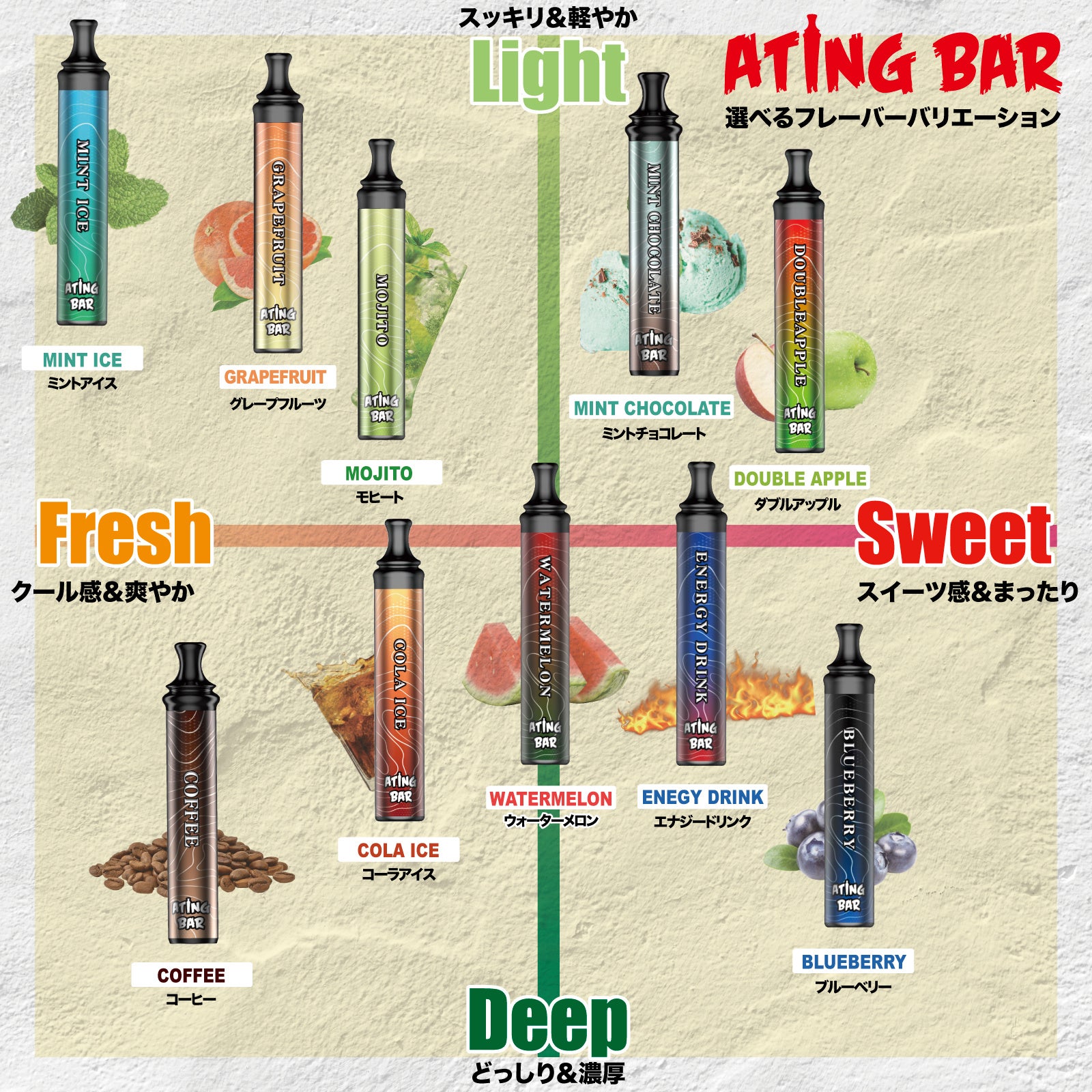 今回の新フレーバー発売により、『ATING BAR』1800回吸引は全10種類となります。