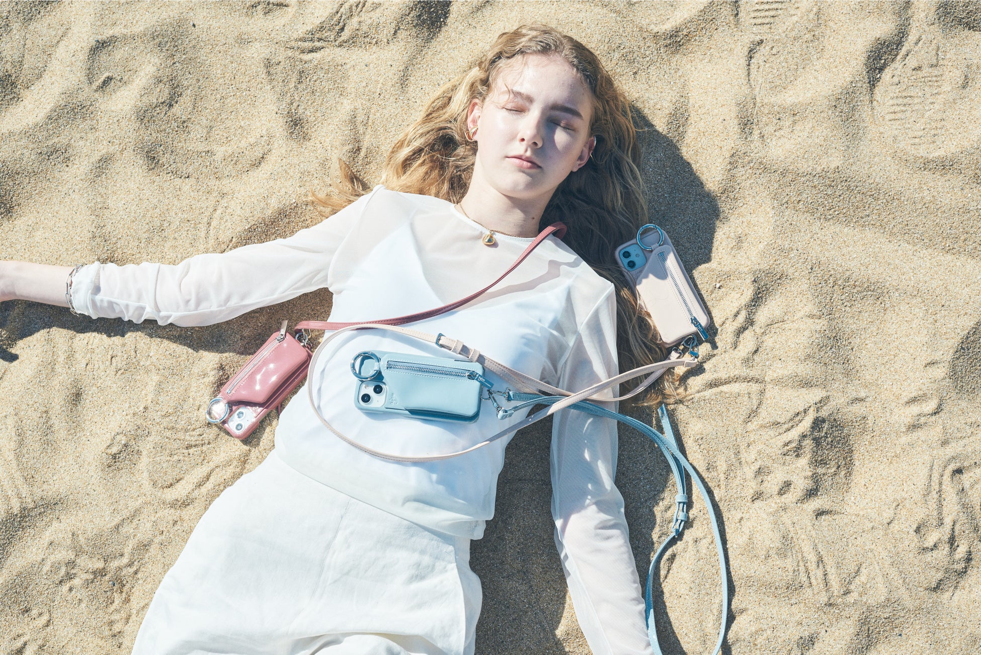 cadenas zipphone caseの2023SS限定カラー「nude beige」をショルダー本体裏面に使用。