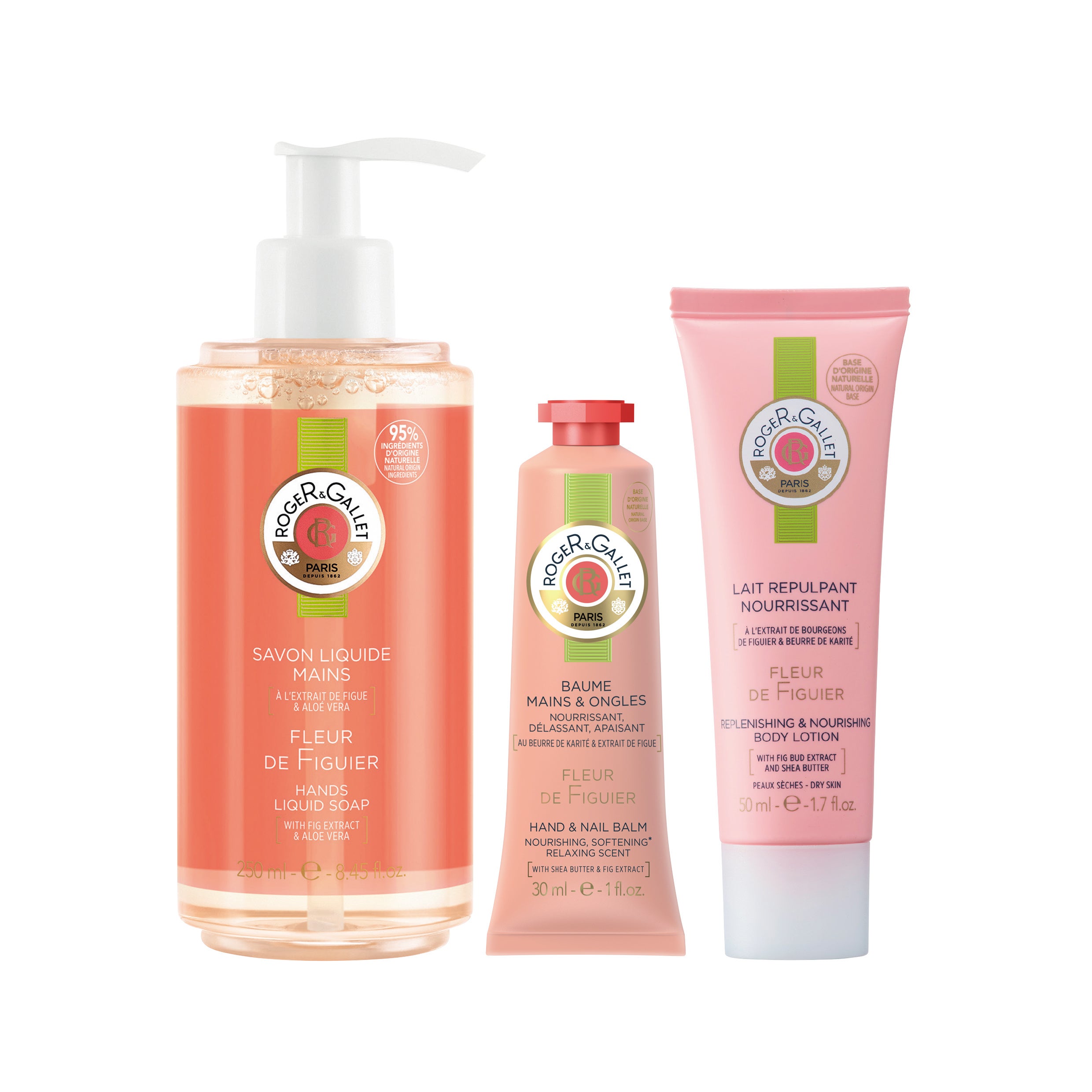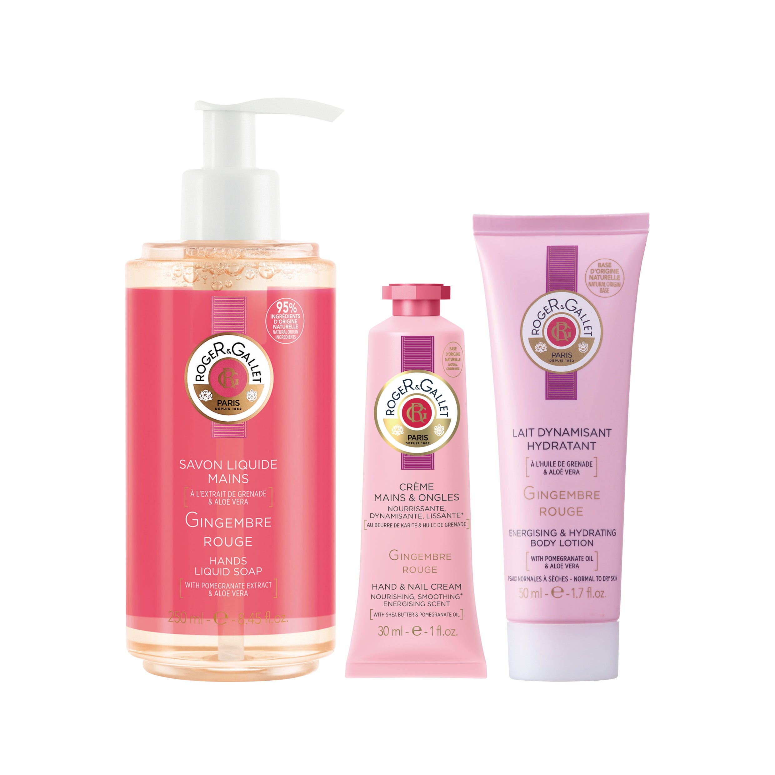 手洗いとハンドケアの日々の習慣をお気に入りの香りで行えるキットには、「ジンジャールージュ」と「フィグ」の人気の2種類の香りをご用意。リキッドソープとハンドクリームに限定のミニサイズのボディローションをセットしました。