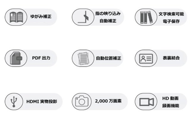 ・HDMI端子で2000万画素HD動画出力・録画が可能。A3サイズ立体物も楽々読み取り。