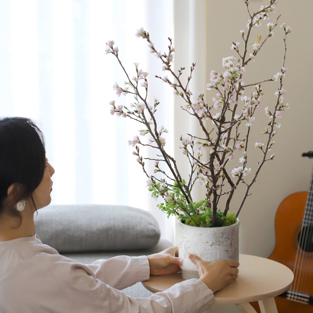桜はつぼみ〜少し花が咲いた状態でお届けしますので、満開になっていく桜をリビングや⽞関に飾って楽しめます。満開の桜のあとは新緑がさわやかな葉桜を。こちらも⾵情があり⼤変うつくしいものです。⾃宅にいながら⽇本のゆたかな季節のうつりかわりを楽しめます。