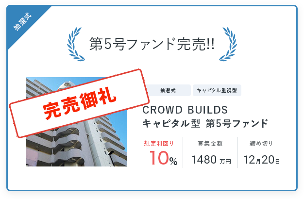 CROWD BUILDS キャピタル型第5号ファンドが満額調達完了
