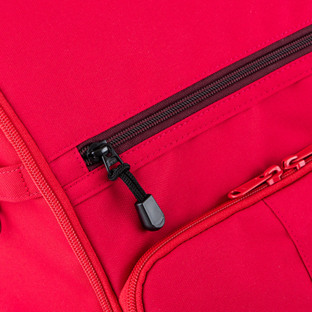 レッドのファスナーはワインレッドのライン。レッド全体が甘い印象になりすぎないよう、ワインレッドのラインが全体をしめた印象にしてくれます。小学生の高学年が使えば可愛らしく、中高生の通学鞄なら、活動的で制服姿にもマッチします。
