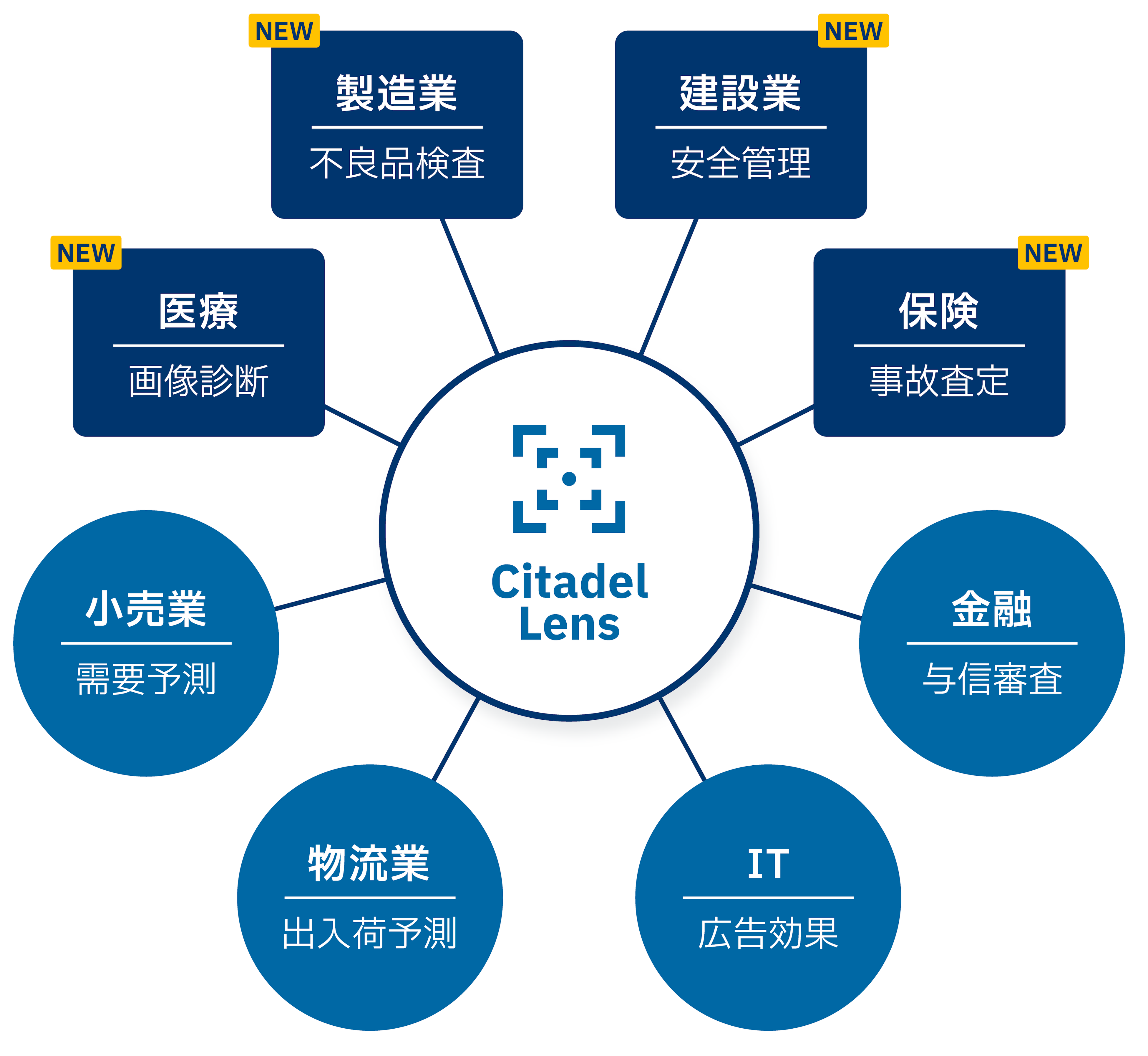 今回の画像版の追加により、Citadel Lensは、需要予測・出入荷予測・与信審査・不正検知・広告効果やチャーン(解約)予測といった、数値や文字データに基づいて推論を行うAIから、画像診断・不良品検査・安全管理・事故査定といった画像データを活用したAIまで、お客様のAIシステムを改修することなく、幅広く汎用的に適用できるようになります。
