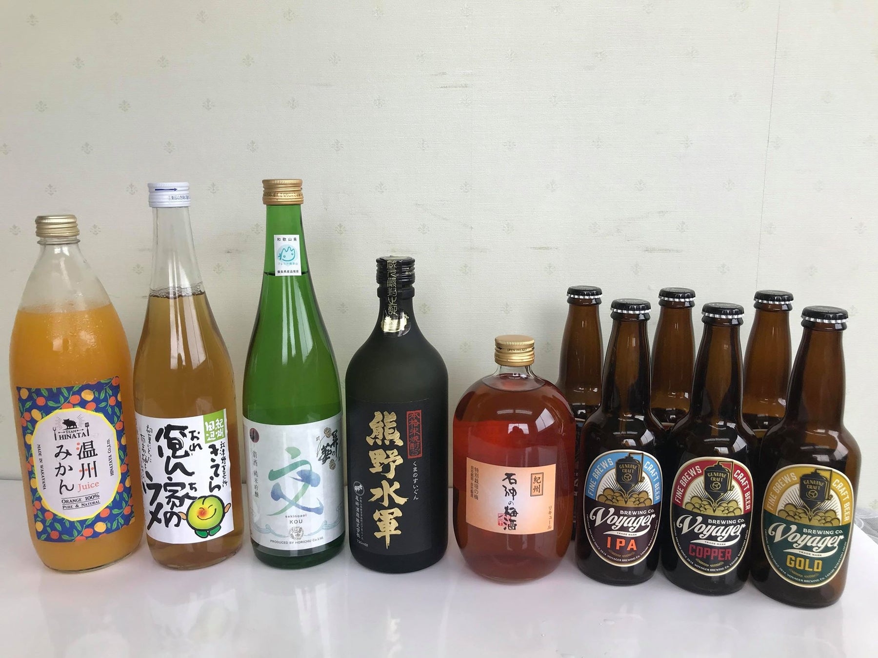 熊野米を原材料とした自社ブランドの日本酒「關の葵 交」や、田辺のクラフトビール「ボイジャー」を詰め合わせたセットです。