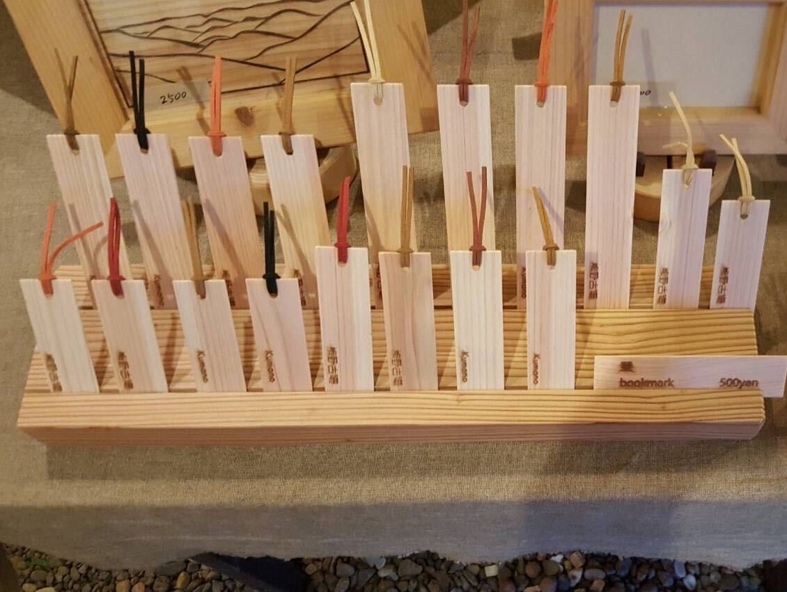 紀州ヒノキを使ったベッドや家具を製作する木工所です。一つ一つに丁寧に名前を入れたブックマークになります。