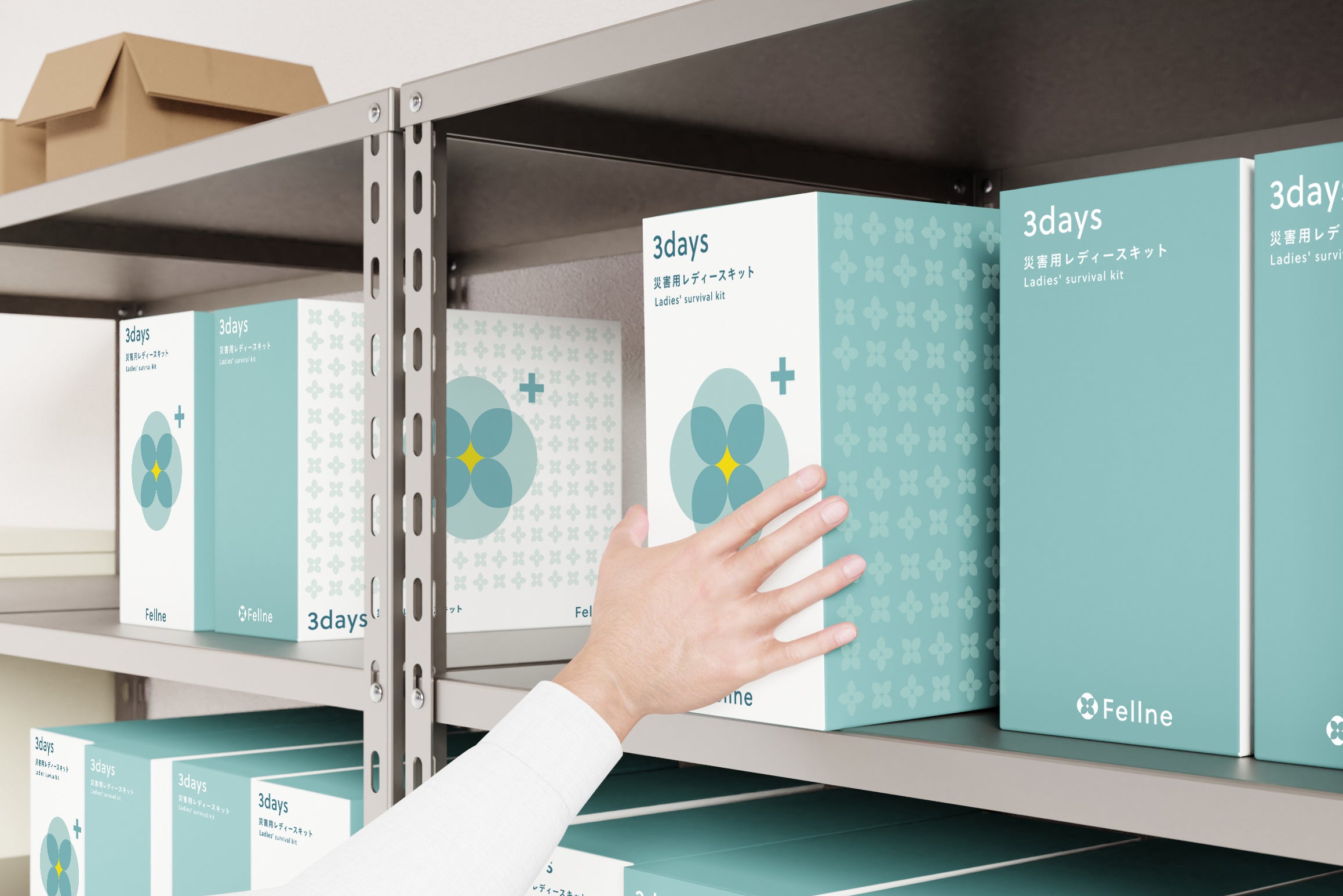 災害時は物流もストップ。避難所で支給される女性向け衛生用品も数が限られ、手に入れられない方も多くいらっしゃるのが現状です。そういった状況下に置かれた場合、不安等でホルモンバランスを崩し、月経が始まってしまうことも。こうした事態を解消するために災害用レディースキットとして開発されたのが「災害用レディースキット - 3days BOX」と「災害用レディースキット - ミニマムキット」です。