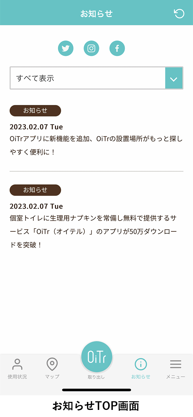 商業施設・学校・公共施設・オフィスをはじめとする個室トイレに生理用ナプキンを常備し無料で提供するサービス「OiTr(オイテル)」を展開するオイテル株式会社(本社:東京都港区、代表取締役社長:小村 大一)は、同サービスの専用アプリ「OiTr」が50万ダウンロードを突破したことをお知らせいたします。