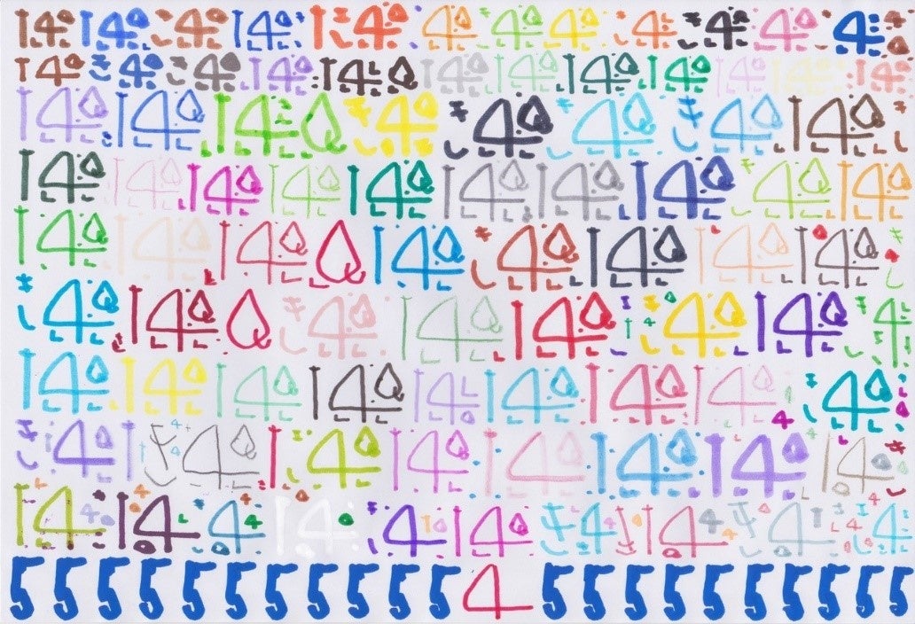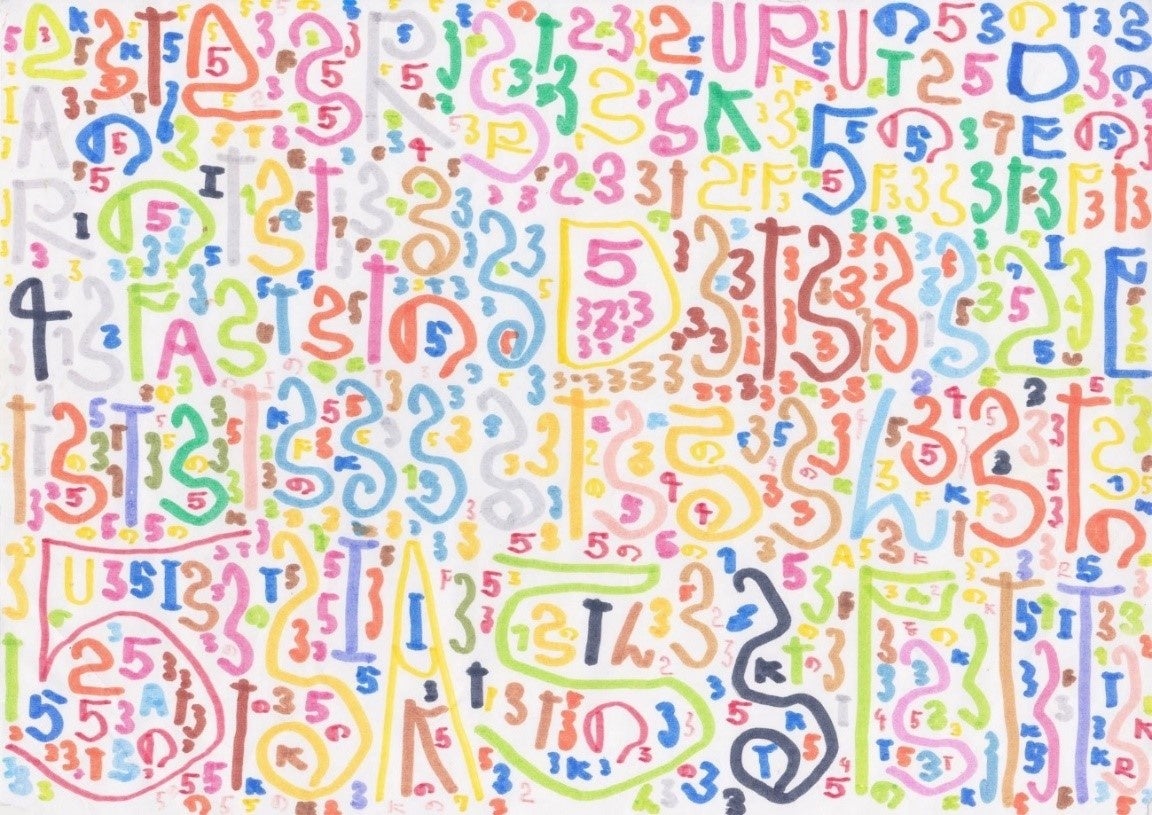 ベット・数字などの文字で描かれるカラフルな作品は、2000枚に1枚の割合で完成している。