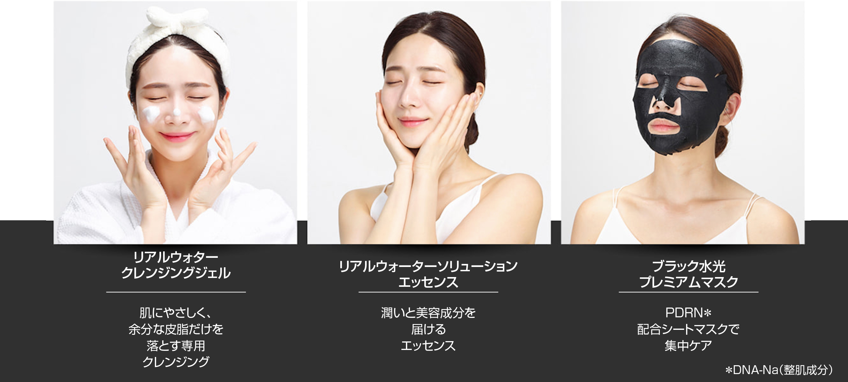 なかでも「ブラック水光マスク」は、JAYJUN COSMETICを代表するアイテムとして、世界中の多くの方々に長年親しまれてきました。肌にうるおいを与え、つややかな印象へ導くシートマスクとして、日々のケアから特別な日の集中ケアまで幅広く活用されています。