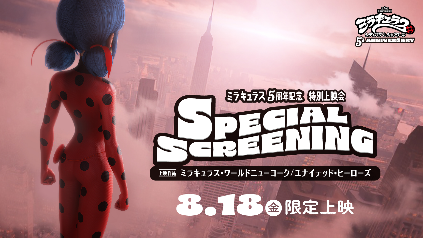 「ミラキュラス レディバグ&シャノワール」が日本で初放送された2018年7月から5周年を記念したTVスペシャル「ミラキュラス・ワールド/ニューヨーク ユナイテッド・ヒーローズ」特別上映会の先行抽選販売が先日行われ、ご好評につきチケットが完売した会場のうち、限定で2会場の追加上映が決定しました。