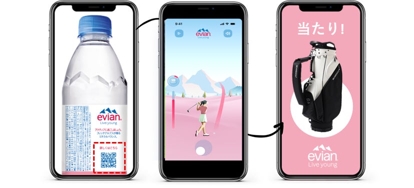 7月1日(月)から8月31日(土)までの間に、期間限定のスポーツボトルに記載されたQRコードをスマートフォンのカメラで読み取ってキャンペーンサイトにアクセス、またはSNS等で配信するリンクをクリックし、エビアンスポーツのゲームを体験*するとキャンペーンに応募いただけます。