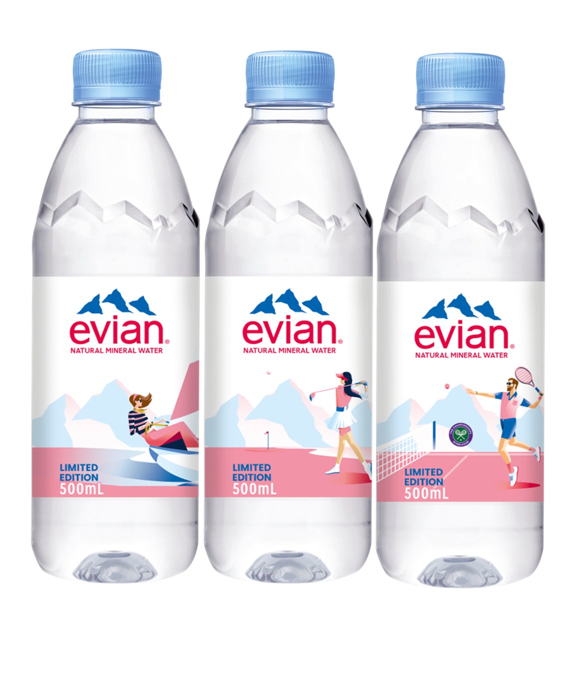 エビアン®は、ウィンブルドン、USオープン、アムンディ・エビアン選手権などとの名誉あるパートナーシップにより、10年以上にわたって、ゴルフ、テニスの選手とファンをサポートしてきました。7月1日(月)から期間限定で、スポーツをテーマにしたオリジナルデザインボトルを発売します。世界的にスポーツに注目が集まる2024年夏は、フレンチアルプスの大自然に育まれたエビアンで、ココロとカラダを潤しましょう。
