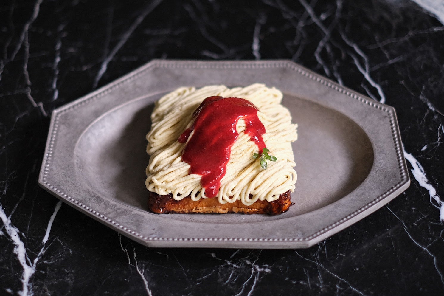 「冬のモンパン」〜栗とチーズと林檎のモンブランフレンチトースト〜 苺ソース添え
