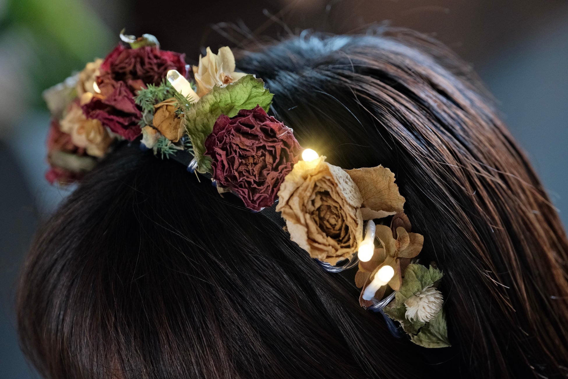 入園チケット不要でお買い物ができるマーケットでは、ひかるボールリースやカチューシャなどライトアップを楽しむアイテムのほか、インテリアにもピッタリな上品なひかるグッズが勢ぞろい。園内のバラを使った香りのいいオリジナル商品やクッキーなどお土産にもぴったりなアイテムも取り揃えております。ライトアップを見に行く前にお立ち寄りください