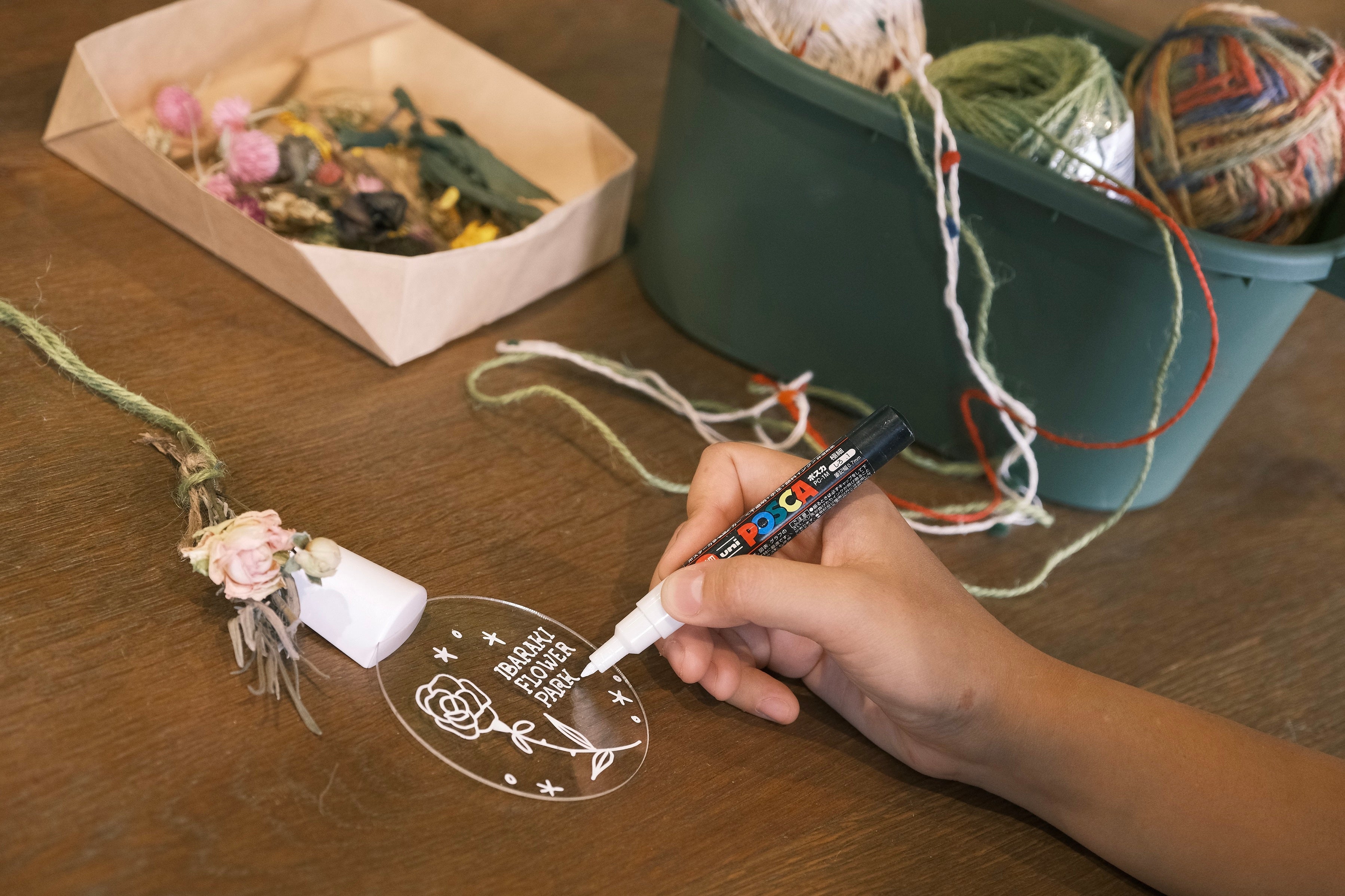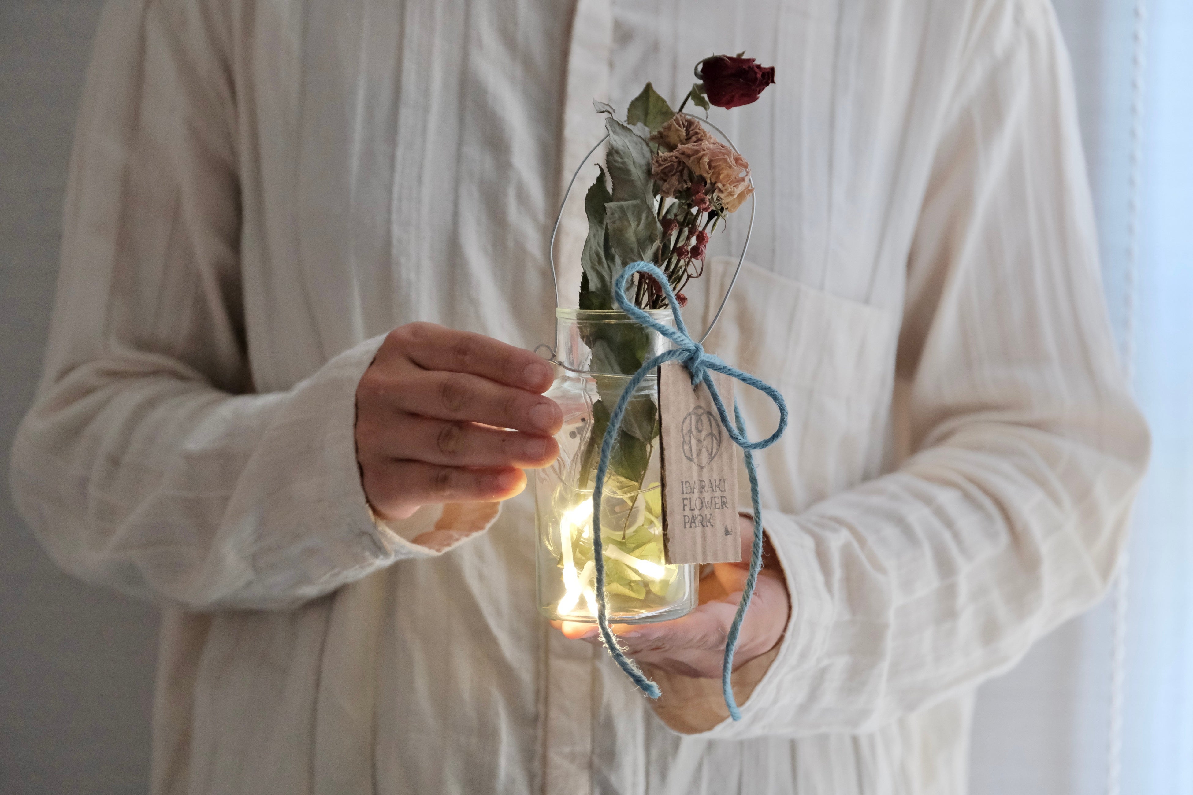園内の花や自然を使った年間100種類以上のアクティビティを開催しているインフォメーション。ライトアップを楽しむのにぴったりな「ドライフラワーのボトルランタンづくり」「光る!お絵かきオーナメントづくり」など多彩な「100の体感」アクティビティをご用意しております。