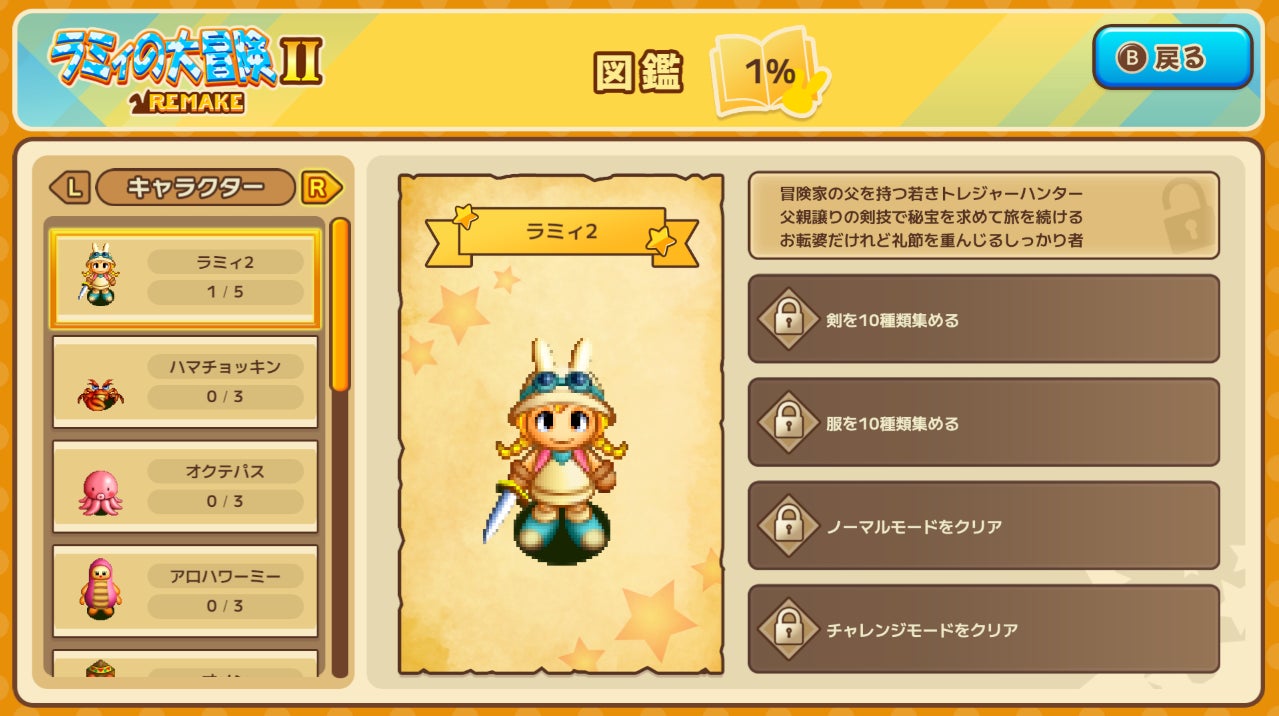 ランダム生成のダンジョンに挑み、様々なアイテムを駆使して脱出を目指す、ランダム生成ダンジョン系のローグライクRPG「ラミィの大冒険」シリーズ。本作はその第1作・第2作を、当時のドット絵の雰囲気はそのままにUnityエンジンでフルリメイク。操作性やUI等の改善のみならず、図鑑やカラー変更機能、チャレンジモードや追加ストーリーなどの多くの追加要素を加えています。