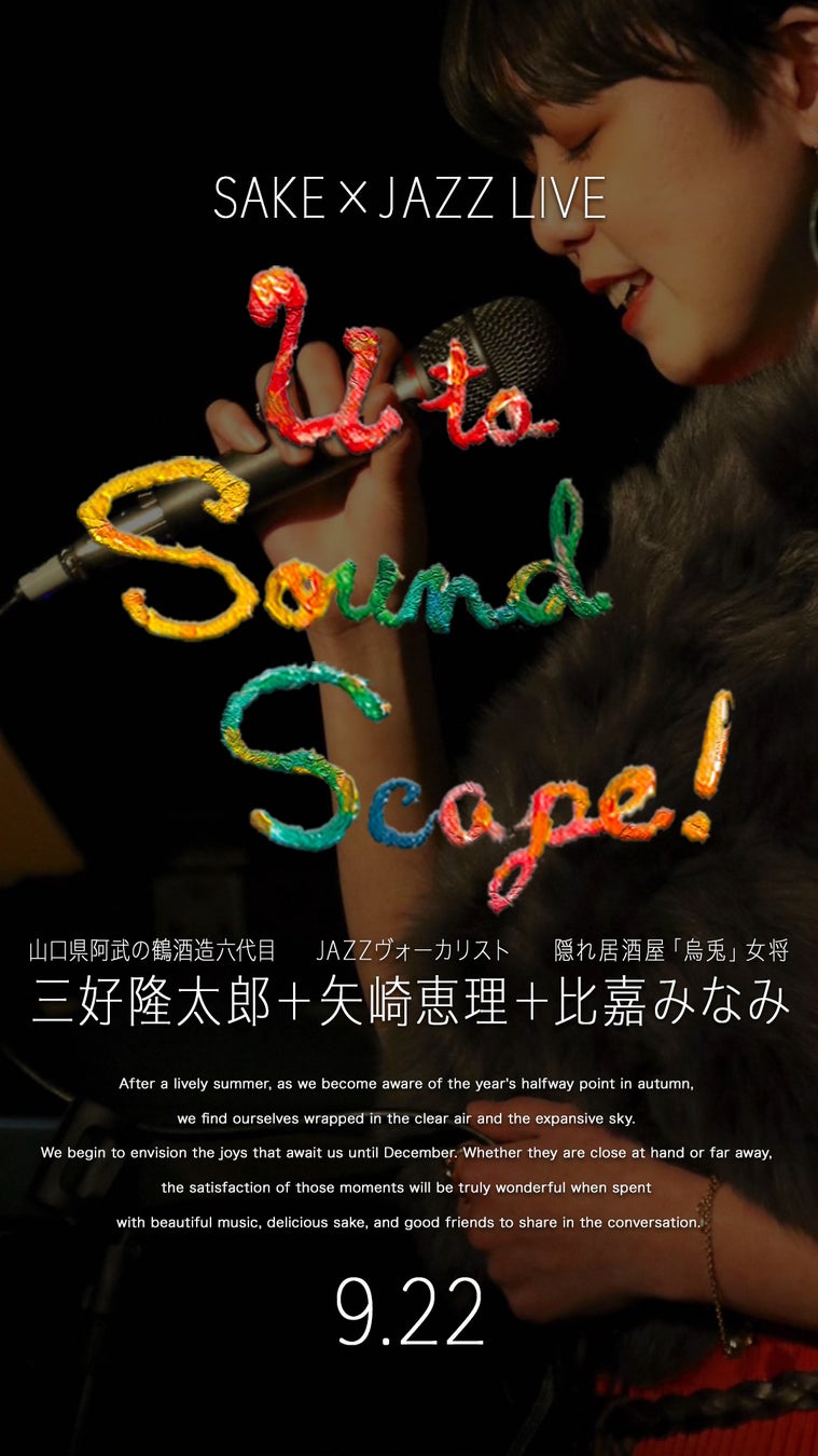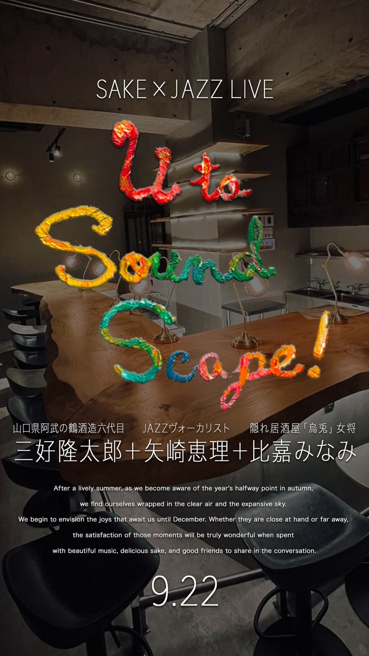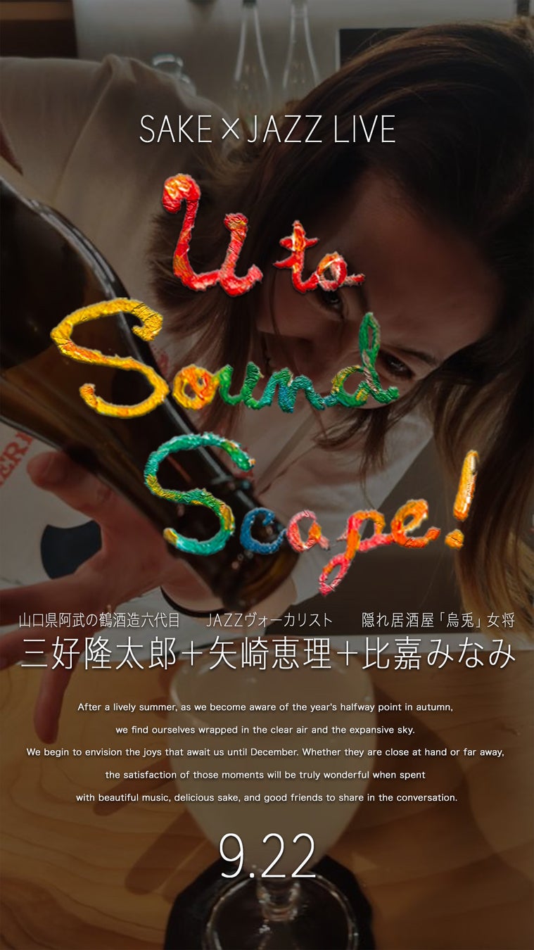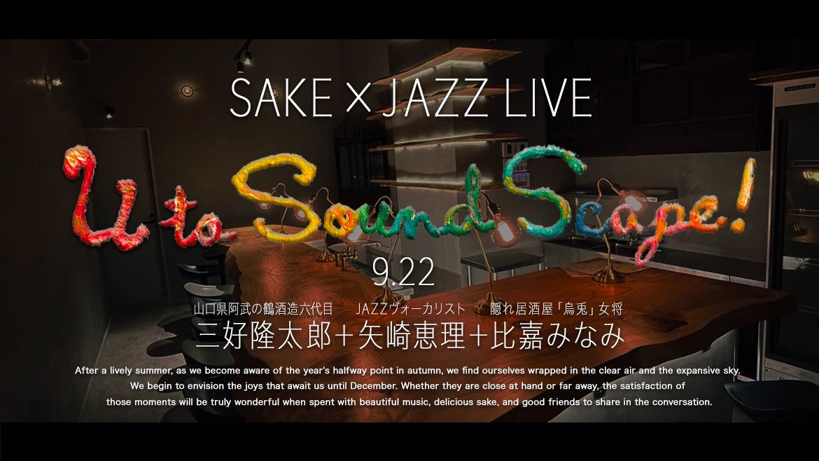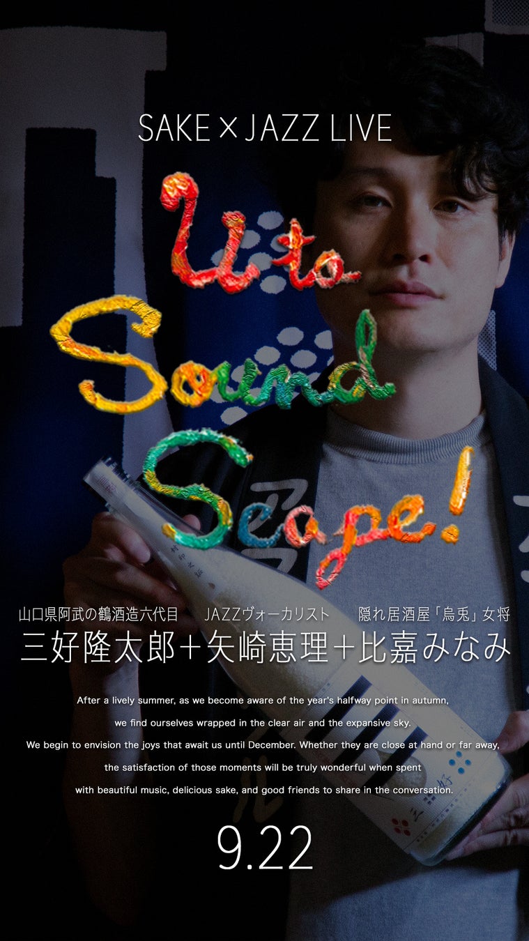 阿武の鶴酒造六代目 三好隆太郎×Jazzヴォーカリスト 矢崎恵理×国分寺 隠れ居酒屋「烏兎」女将 比嘉みなみ。トリプルコラボで日本酒Jazzライブイベント「U to Sound Scape!」を開催!