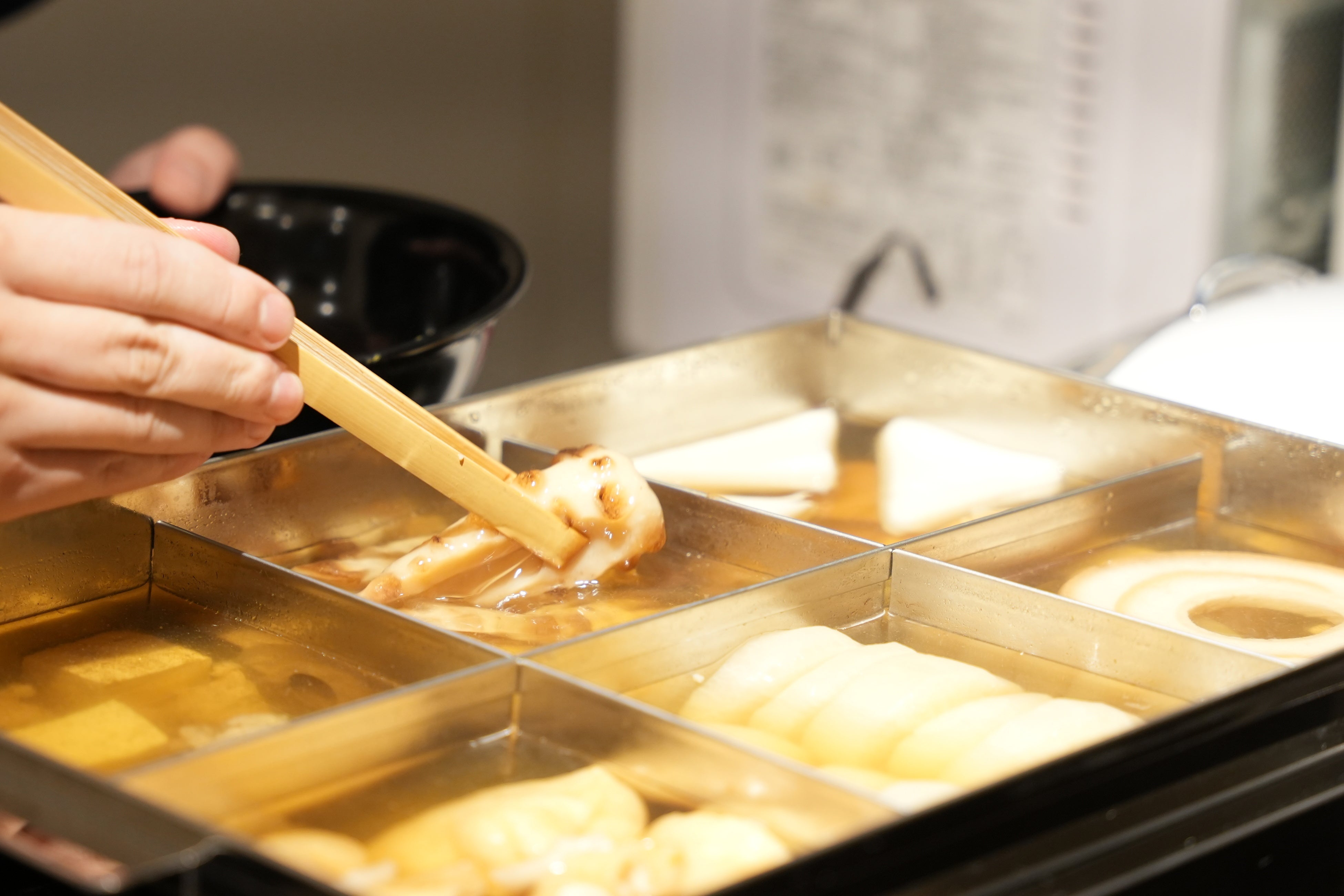 北海道産の天然昆布を大阪の老舗問屋から厳選して仕入れ、かつお節と合わせて丁寧に取った出汁が染み込んだおでんを提供しています。ぜひ、こだわりの味をご堪能ください。