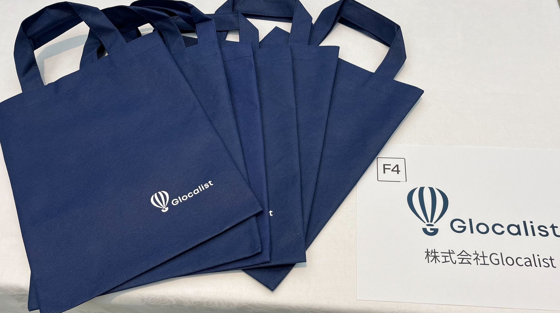 実際にサービスを体験いただいたお客様からは「通訳を介さなくても、Glocalist上で日・英・現地語で現地の行政文書等の同時解釈ができるのが便利」「様々な専門家から情報収集やヒアリングをしていたことが、今後はGlocalistの利用だけで解決できる事が増えそう」などのご感想をいただき、グローバルビジネスリスクの一元管理対応によるメリットを来場者に伝えることができました。また、来場記念のノベルティにはGlocalistオリジナルトートバッグを用意。こちらも多くの方から好評いただきました。