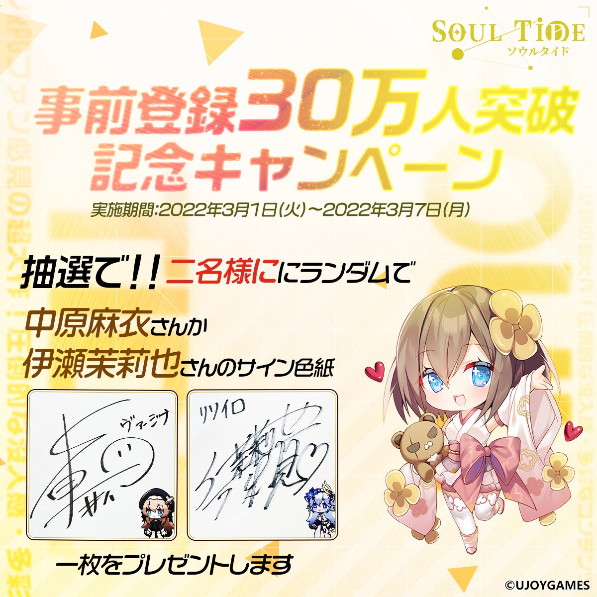 【事前登録30万人突破!】迷宮探索RPG『ソウルタイド』事前登録者続々増加中!中原麻衣さんサイン色紙プレゼント!デートシステム&キャラ紹介も!