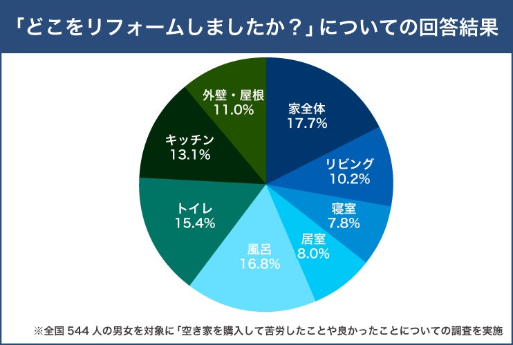 リフォーム箇所は水回り及び家全体が多いようです。ランキングは以下のようになりました。