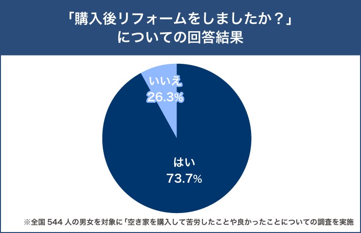 多くの人が空き家を購入後リフォームをしていますが、一方で約26%の人はリフォームせずそのまま住んでいるようです。