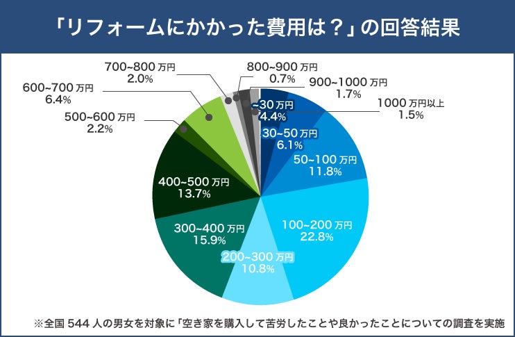 リフォームにかかった費用は100~200万円かかった人が最も多い