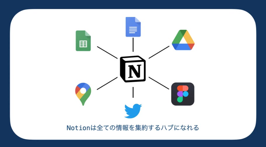 Notionを介せば、他のツールもNotion内で全て完結させることができる。