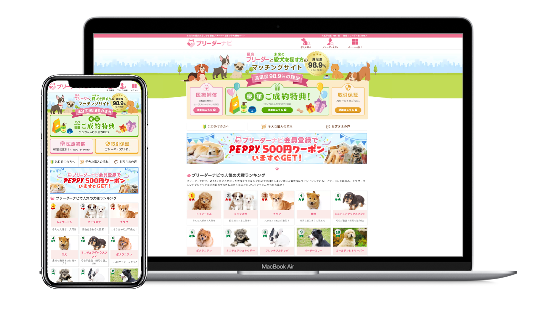 ブリーダー直販の子犬販売サイトとしては業界トップ(2022年5月27日時点)の子犬掲載数となっています。