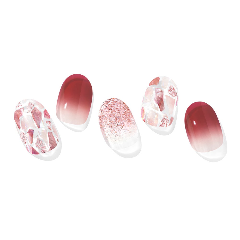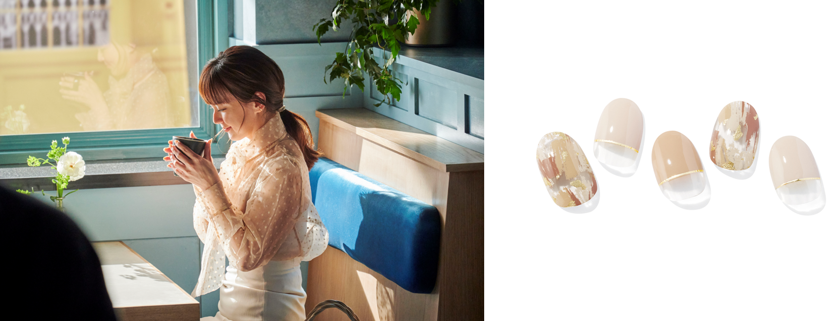 サロンの品質と⼿間を⼀枚のシールとすることで、簡単に装着できるネイルシールの⼿軽さはそのままに、本物のジェル特有の仕上がりの美しさを楽しむことができます。更に、従来のネイルシールに⽐べて、⽖へのフィット感と持続⼒が改善されたことで、第3のネイルとも呼ばれています。