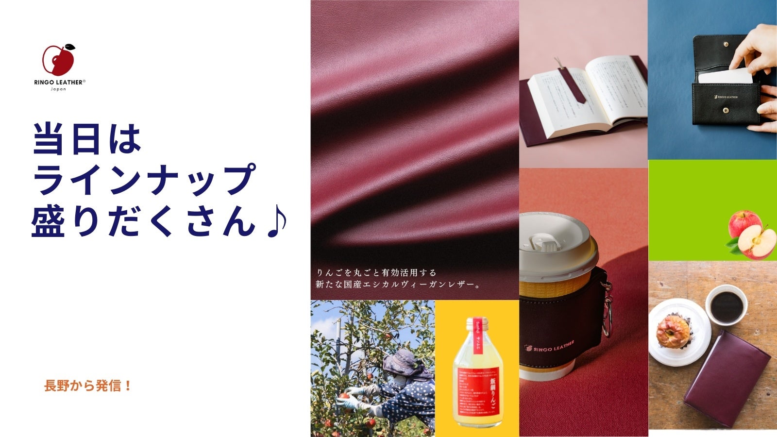 アパレル業界やその他ビジネス関係者をはじめ、週末には家族連れも楽しめる内容となっています。当日は飯綱町・SORENAのスタッフが心を込めてご対応いたします。日本初となる「りんごレザー」、Makuakeで大ヒット商品「Smashbag2」、そして飯綱直送の「リンゴジュース」など注目商品盛りだくさん!