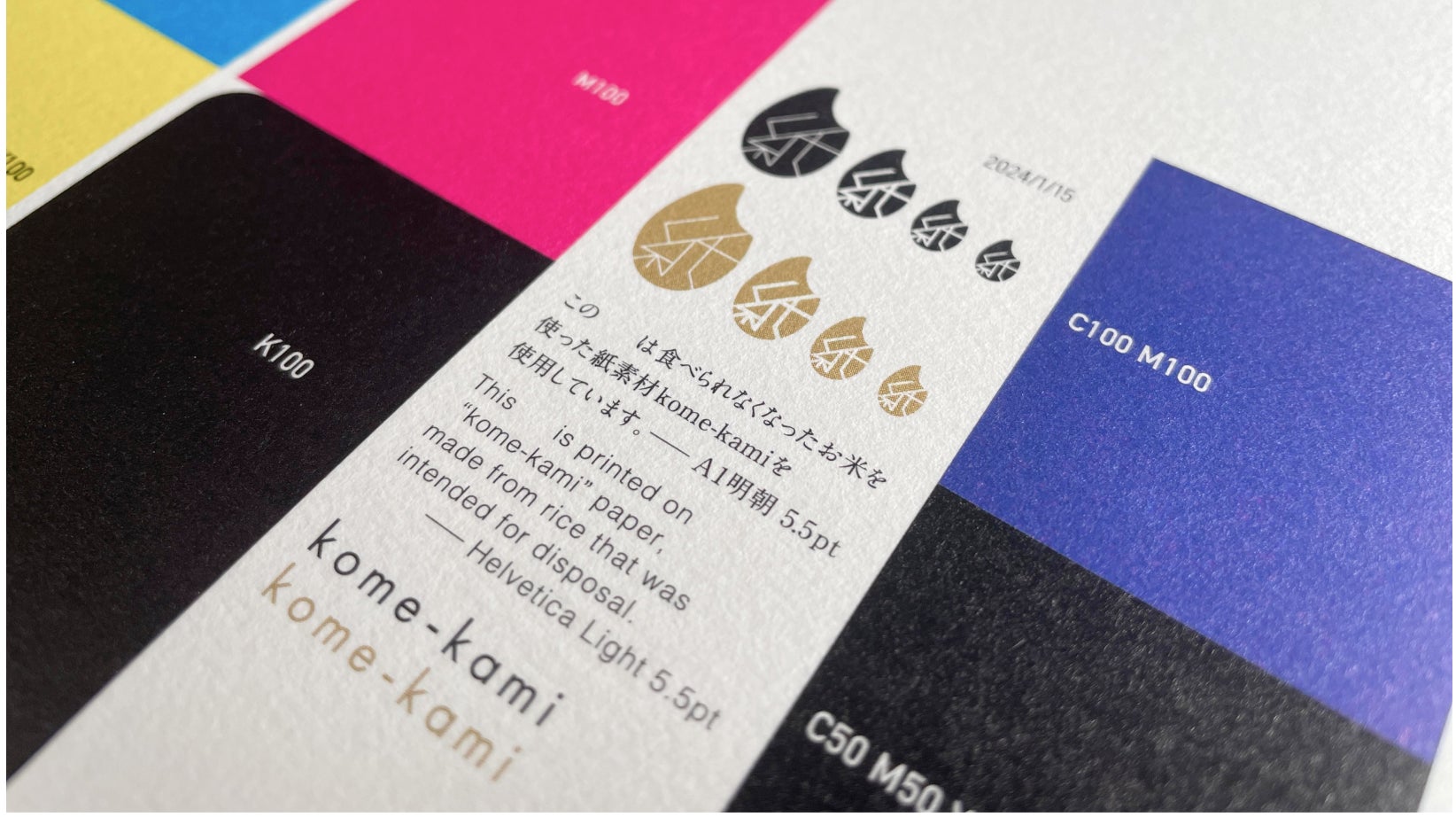 ・2021年2月にパルプと米を一体化させたkome-kami(ナチュラル色)を開発し発売。2023年11月には、パルプを繋げる接着剤に米糊に代替することにも成功し、さらに環境に優しく進化。今回新しく浮世絵ホワイトを開発しました。