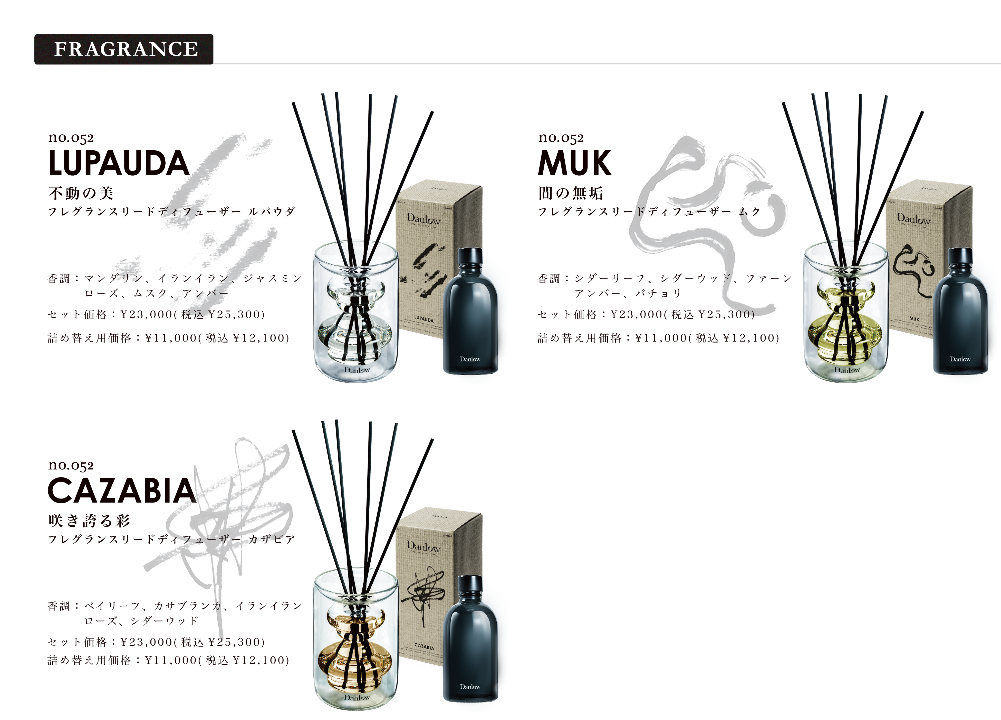 ダンロウ フレグランスリードディフューザーから、既存の3種に加え、新フレグランス3種が新登場。