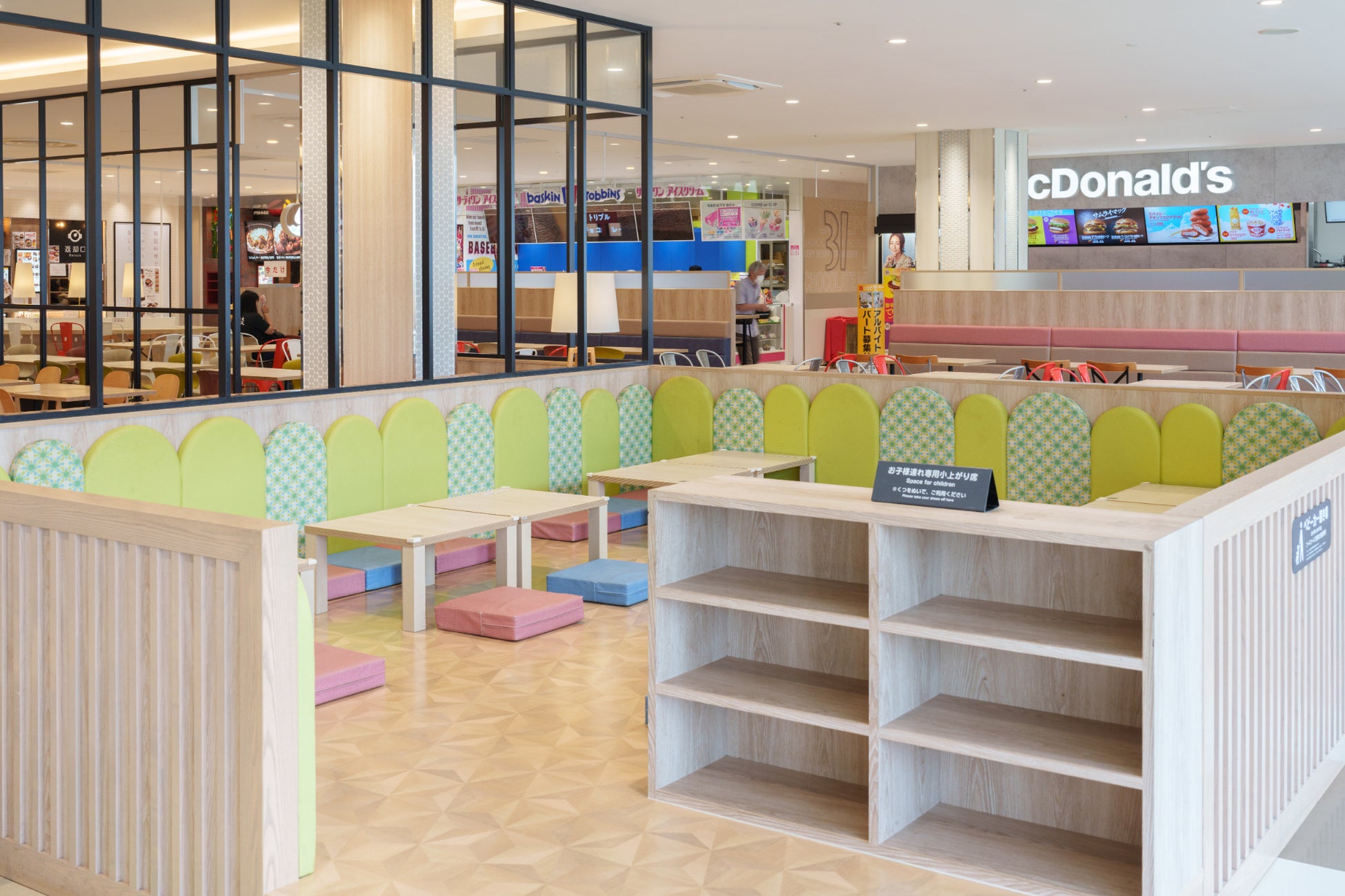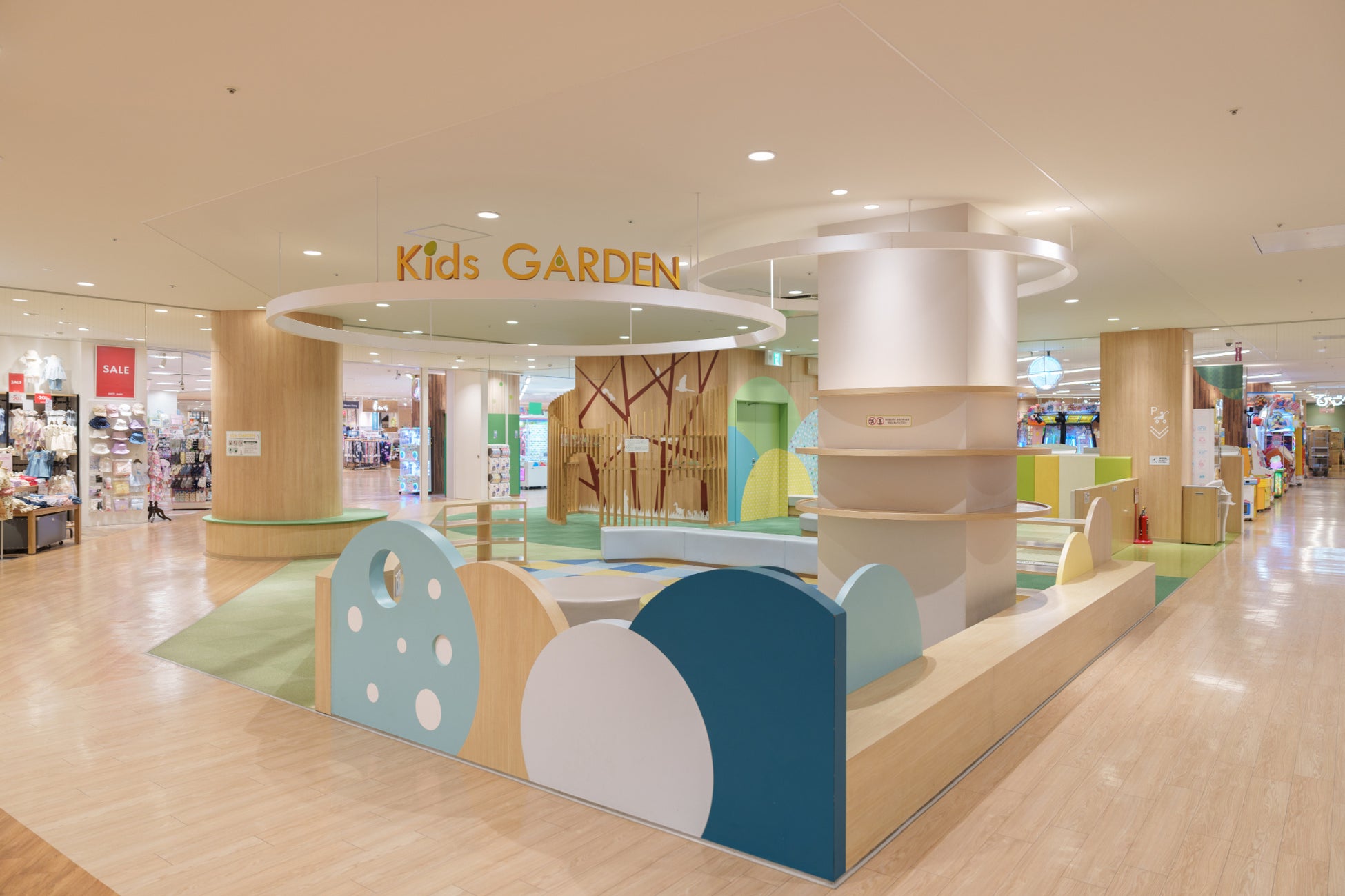 子育て中のママ・パパに大好評をいただいているベビールーム、キッズガーデン、スクエアダイニング