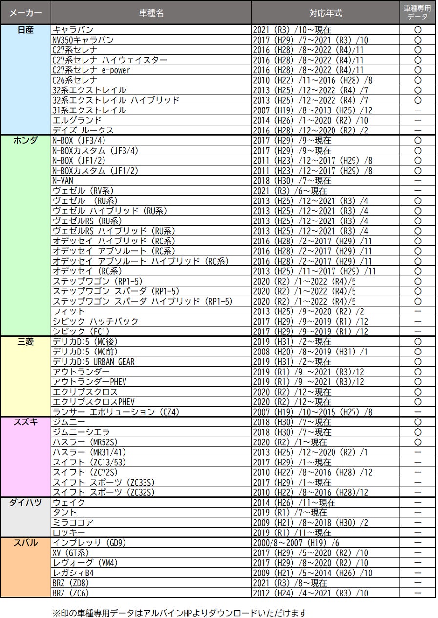 【 XF11NX2S 取付け対応車種 】 ※2023年1月末時点