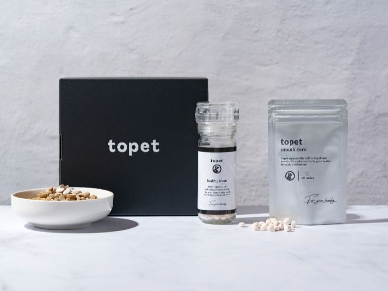 topetでは体調分析に基づく愛犬用カスタマイズサプリ『あなたの愛犬だけのサプリtopet』を昨年11月より提供してきました。これまで実施頂いた1,500名を超える体調分析結果とお客様の声を基に、口腔ケアで最も評判が良かった組み合わせを採用しております。