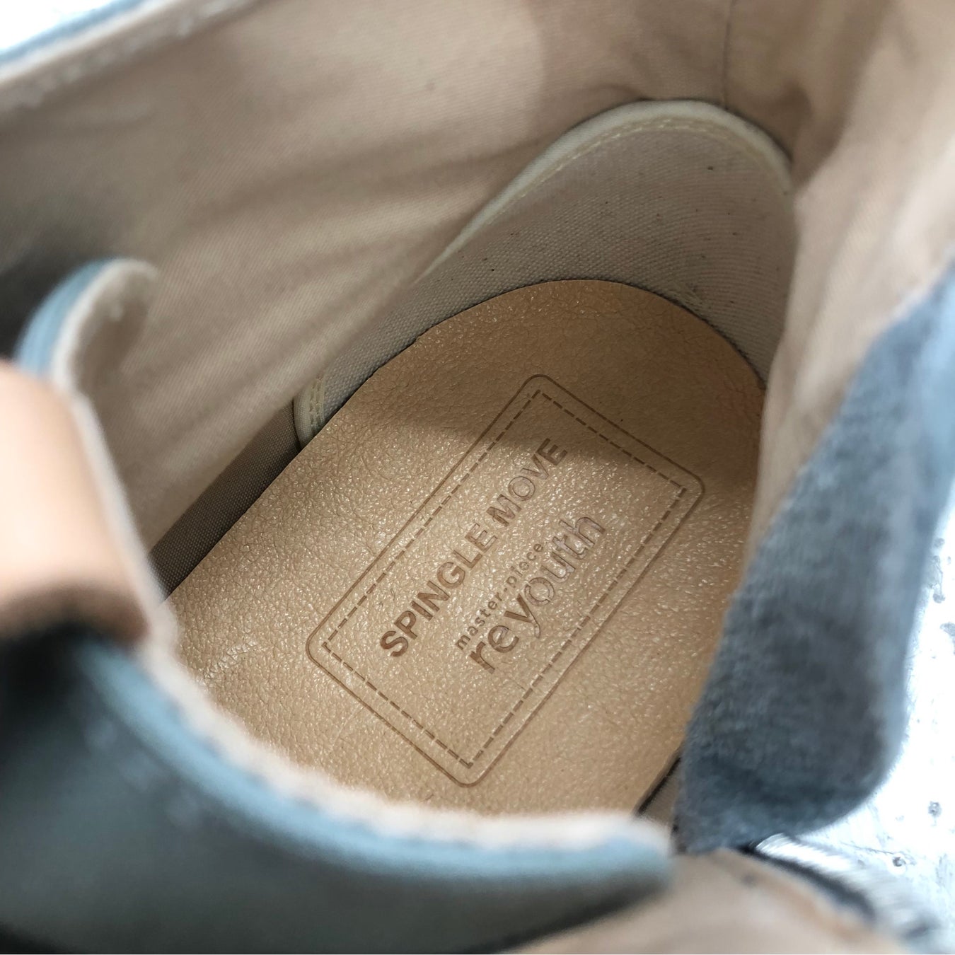 インソールの表面には。コラボレーションの証として「SPINGLE MOVE」と「master-piece reyouth」のロゴが入ったヌメ革を採用。ライニングには、回収したペットボトルや繊維くずなどを原料にしてリサイクルされたポリエステル繊維「ECOPET」を採用