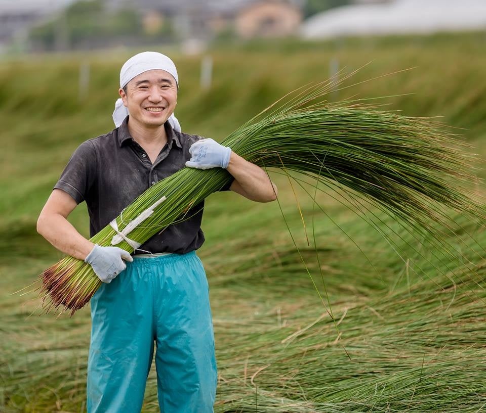 それは、青木畳店 代表青木信男氏が、今年のい草・畳表品評会で農林水産省を受賞した、い草・畳表製織農家の入手困難な畳表を使用した手作りのトロフィーです。