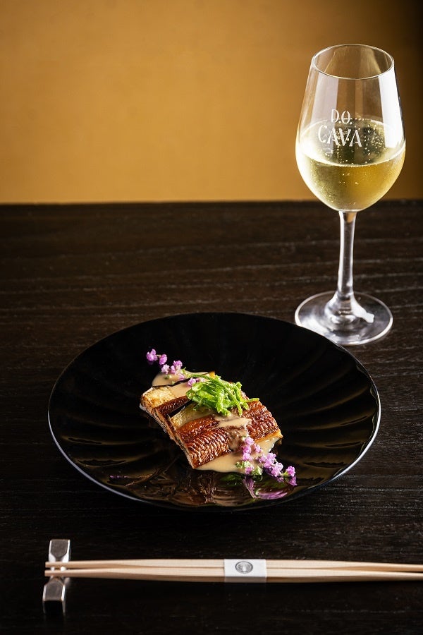 ○「日本橋ゆかり」野永喜三夫シェフによる和食「うなぎと加茂茄子の濃厚胡麻あんかけ」のCAVAペアリング