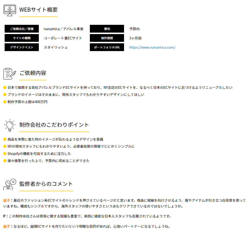 ①【Web制作依頼主】の依頼内容の目的がわかる。