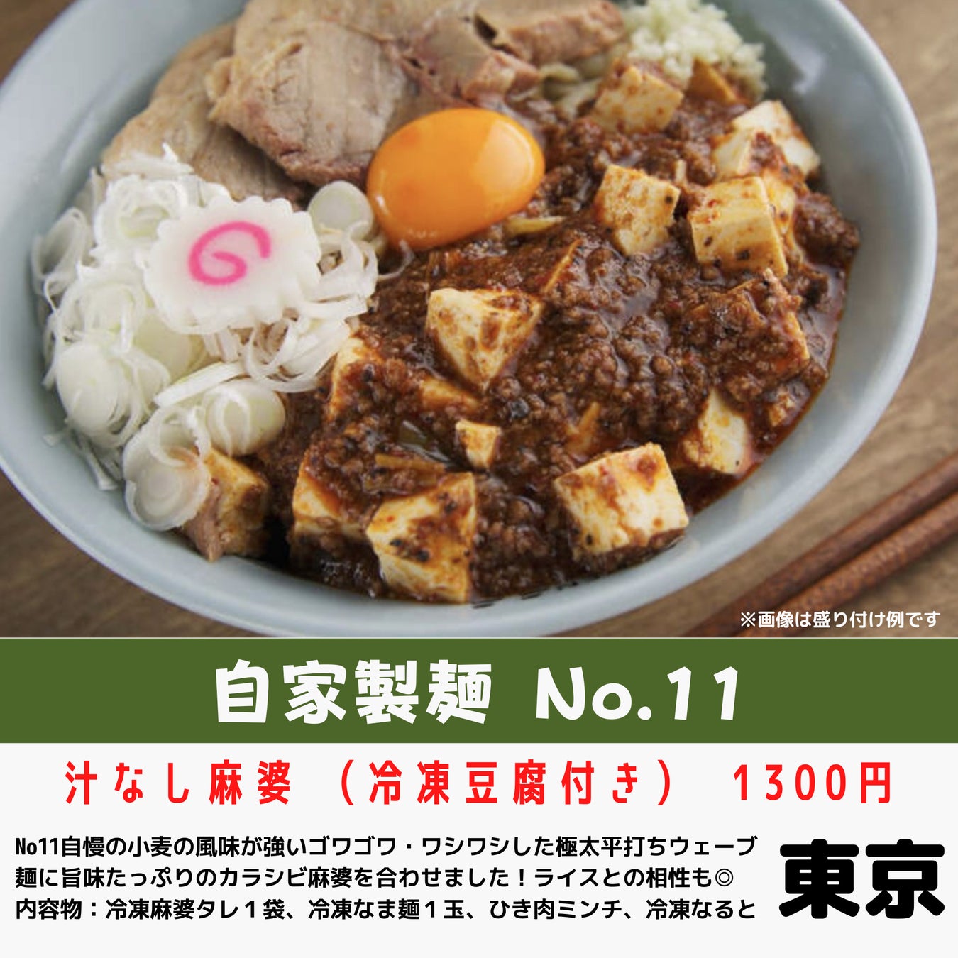 ・自家製麺 No11:汁なし麻婆・冷凍豆腐付き(東京都)