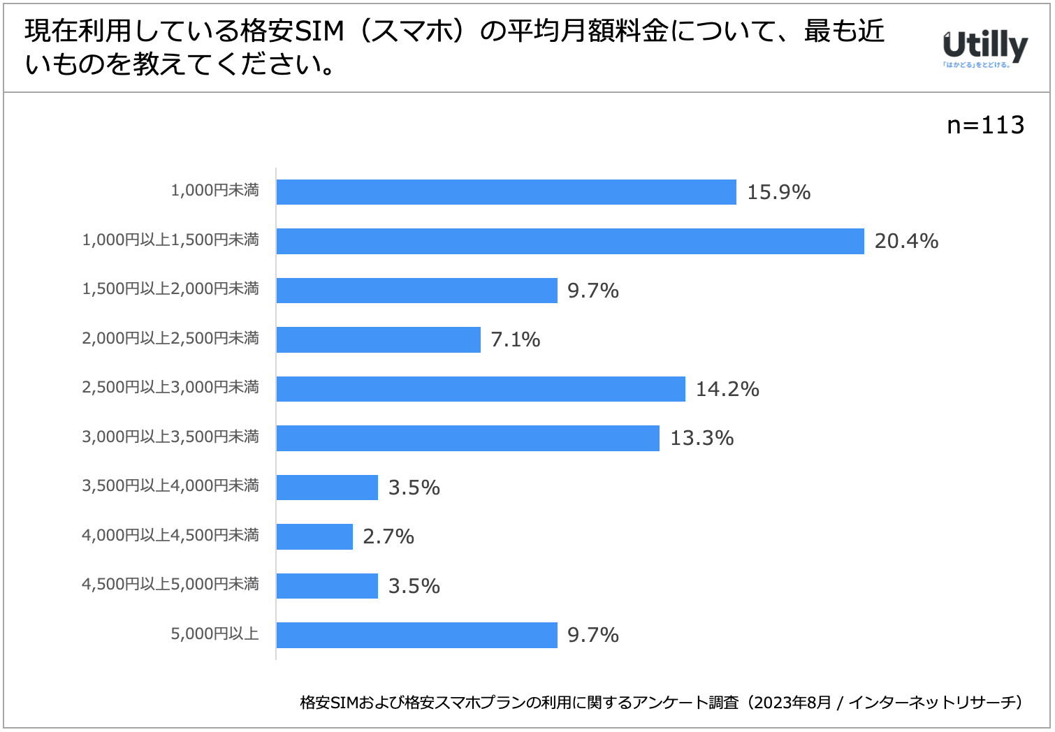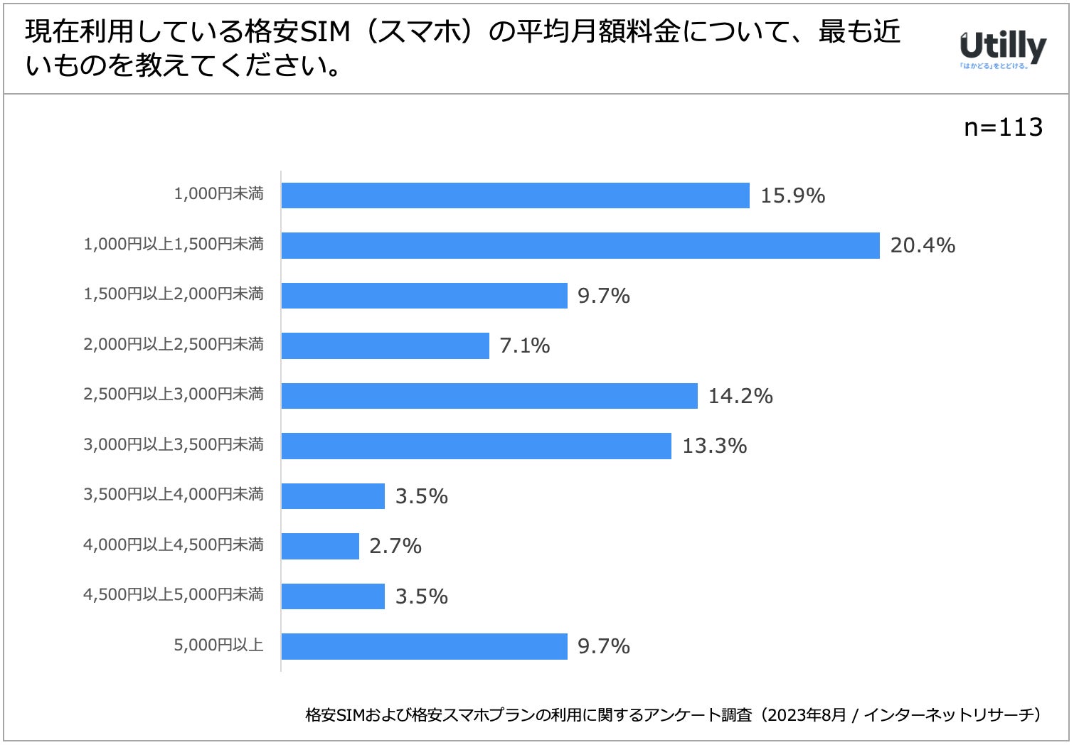 Q. 現在利用している格安SIM(スマホ)の平均月額料金について、最も近いものを教えてください