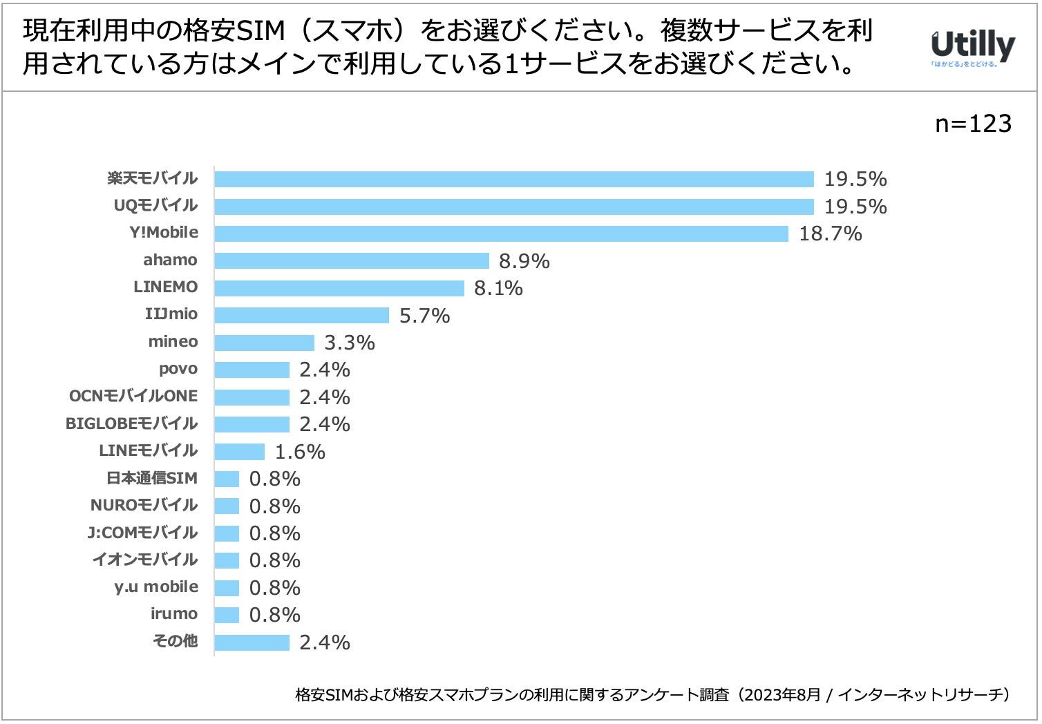 Q. 現在利用中の格安SIM(スマホ)サービスをお選びください。複数サービスを利用されている方はメインで利用している1サービスをお選びください