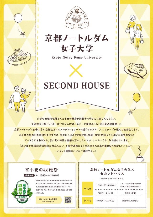 上記3つのゼミと株式会社ザックエンタープライズが運営する「セカンドハウス」との協働で開発した商品は、京小麦「せときらら」普及のため、『京小麦の収穫祭2022』イベントでセカンドハウスが提供するメニューとして販売されます。